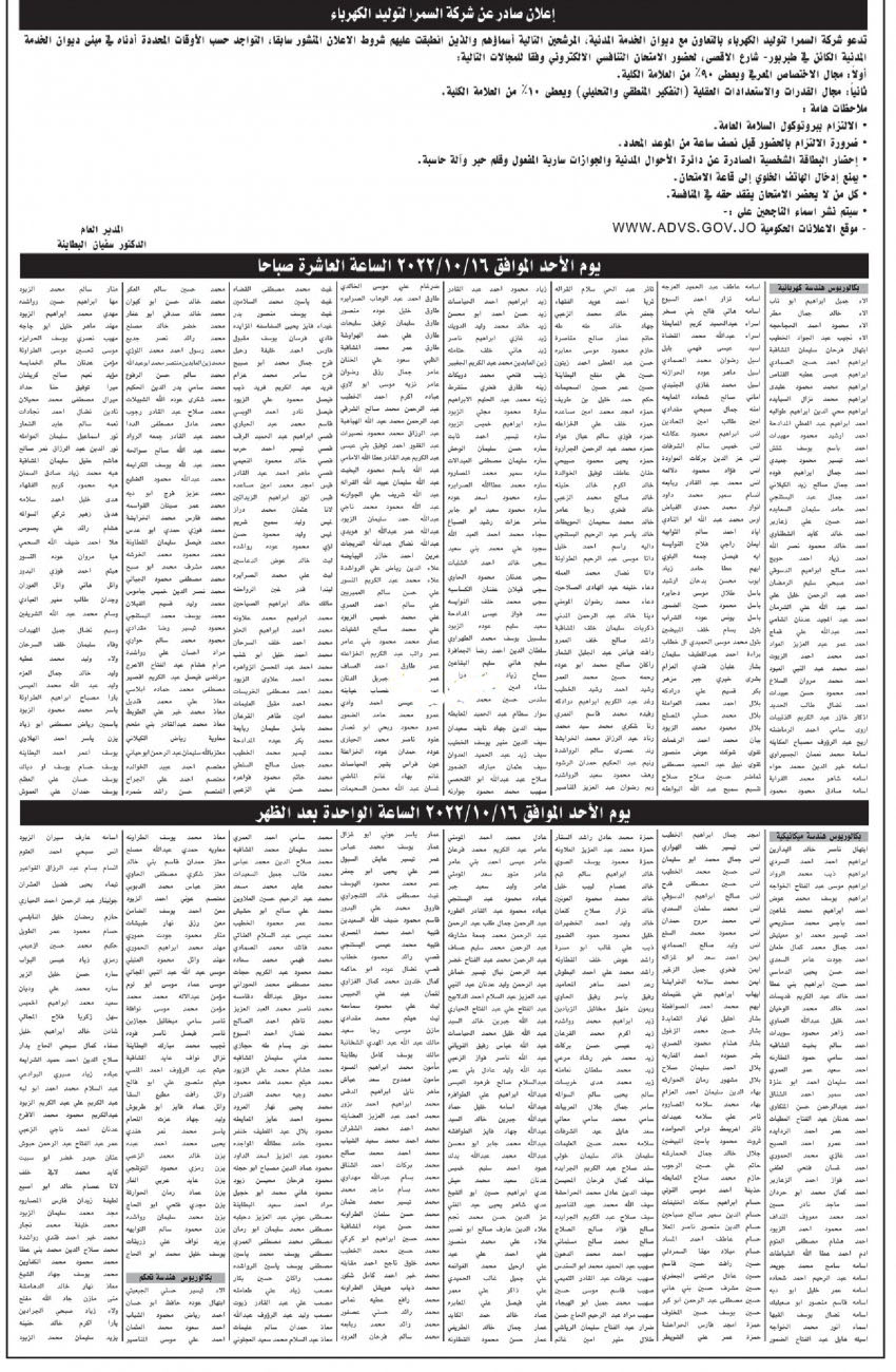 الوقائع الاخبارية:دعت شركة السمرا لتوليد الكهرباء بالتعاون مع ديوان الخدمة المدنية، المرشحين التواجد في مبنى الديوان؛ لإجراء امتحان تنافسي إلكتروني.