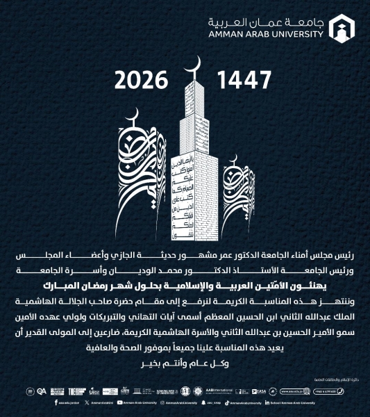 الوقائع الإخبارية : وقعت جامعة عمان الأهلية مذكرة تفاهم مع البنك المركزي الأردني، بهدف تعزيز التعاون المشترك بين الطرفين في مجال التكنولوجيا المالية.