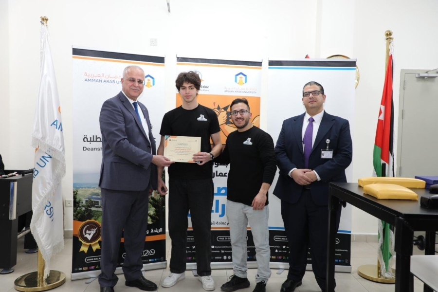 الوقائع الاخبارية:برعاية الأستاذ الدكتور محمد الوديان رئيس جامعة عمان العربية، نظمت عمادة شؤون الطلبة / قسم الأنشطة الطلابية بطولة " مصارعة الذراعين الأولى" في حرم الجامعة وبمشاركة (44) طالباً من مختلف كليات الجامعة وبحضور الأستاذ الدكتور خالد بني حمدان عميد شؤون الطلبة وأعضاء الهيئة الإدارية في العمادة.