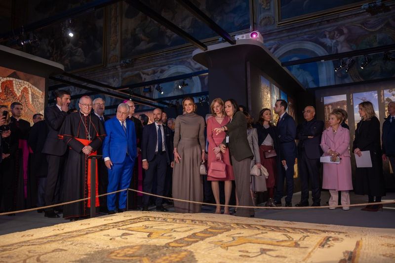 وكان في استقبال جلالتها وسيدة إيطاليا الأولى لدى وصولهما المعرض الذي يحتفل بمرور ثلاثين عاماً على العلاقات الدبلوماسية بين الأردن والفاتيكان، أمين سر دولة حاضرة الفاتيكان الكاردينال بيترو بارولين والمستشار الأكبر لمنظمة فرسان مالطا ريكاردو باتيرنو دي مونتيكوبو ورئيس إدارة التراث في الكرسي الرسولي المونسنيور جيوردانو بيتشينوتي والسفير الأردني في إيطاليا قيس أبو دية والسفيرة الأردنية لدى الجمهورية الفرنسية والكرسي الرسولي لينا الحديد.