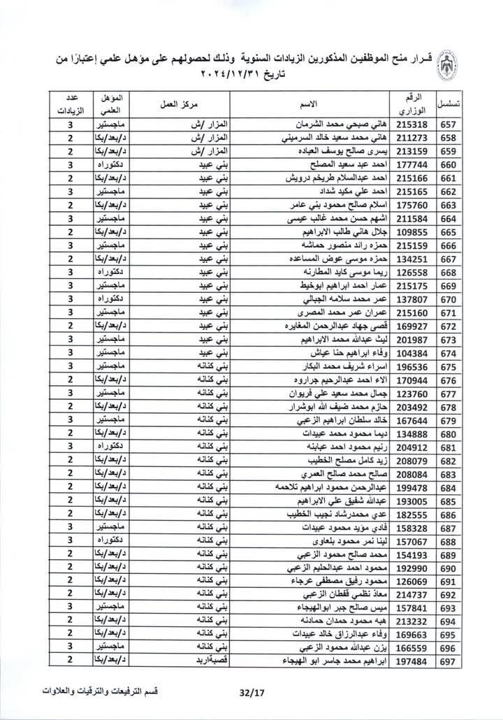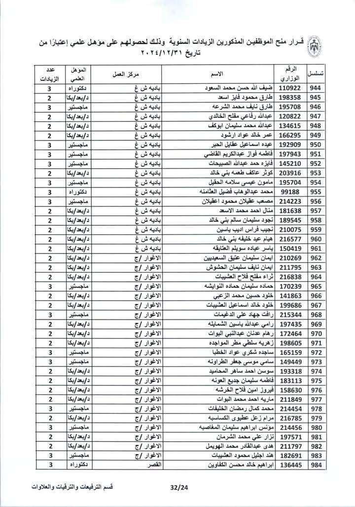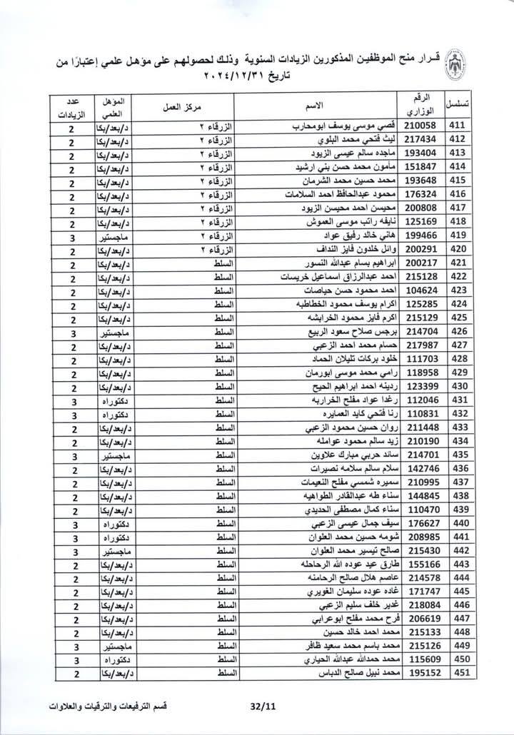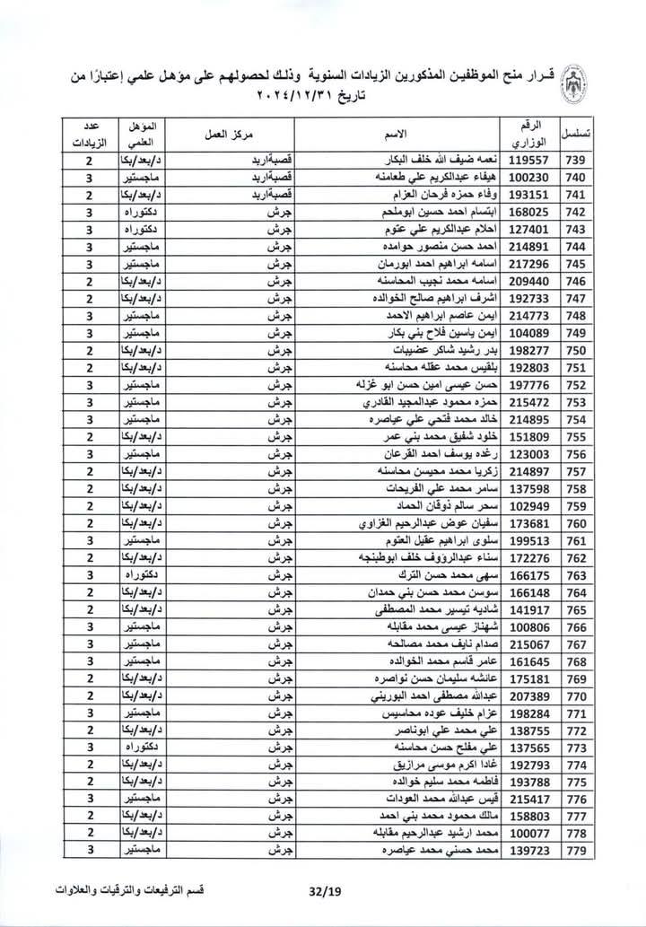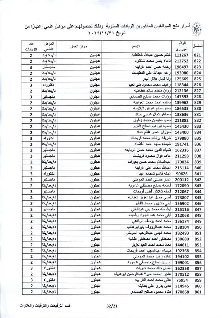 واستند محافظة إلى أحكام المواد (3,4,7,8) من تعليمات توفيق الاوضاع ومنح الزيادات السنوية للمؤهلات العلمية لسنة 2024 من نظام الخدمة المدنية رقم 9 لسنة 2020 وتعديلاته وبناء على تنسيب الأمين العام للشؤون الادارية والمالية.