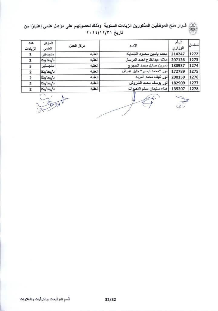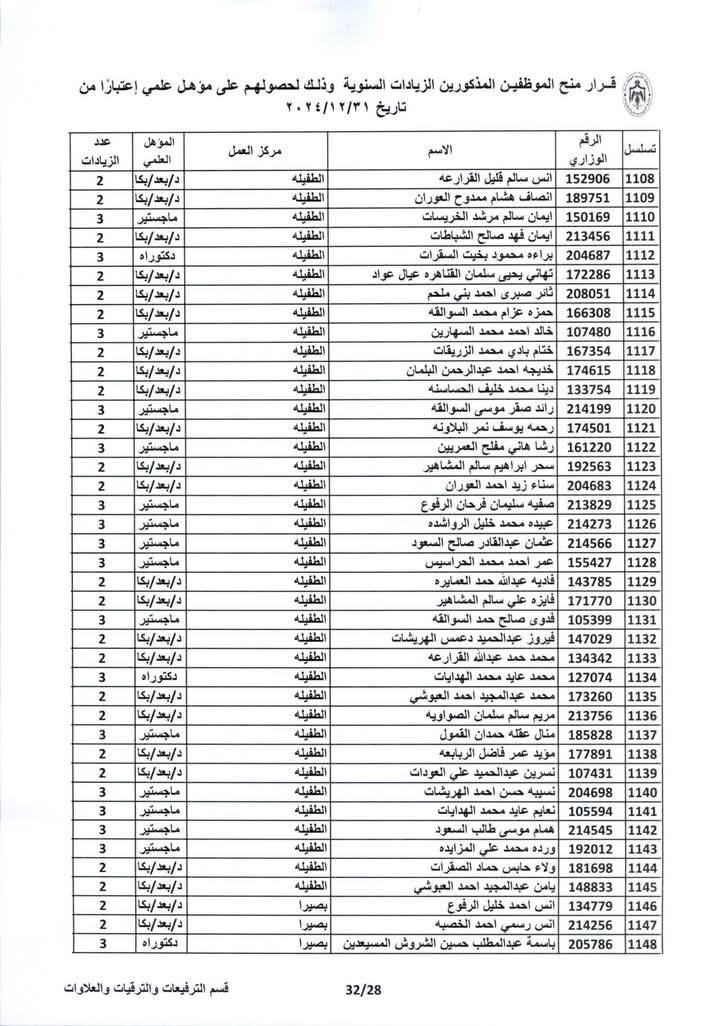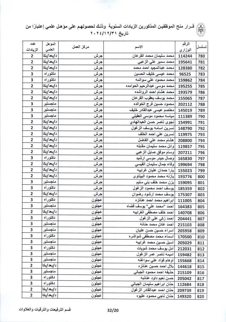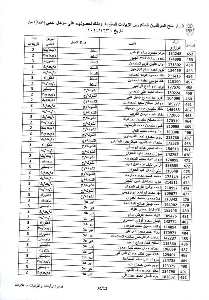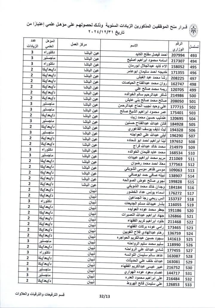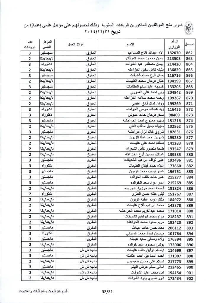 واستند محافظة إلى أحكام المواد (3,4,7,8) من تعليمات توفيق الاوضاع ومنح الزيادات السنوية للمؤهلات العلمية لسنة 2024 من نظام الخدمة المدنية رقم 9 لسنة 2020 وتعديلاته وبناء على تنسيب الأمين العام للشؤون الادارية والمالية.