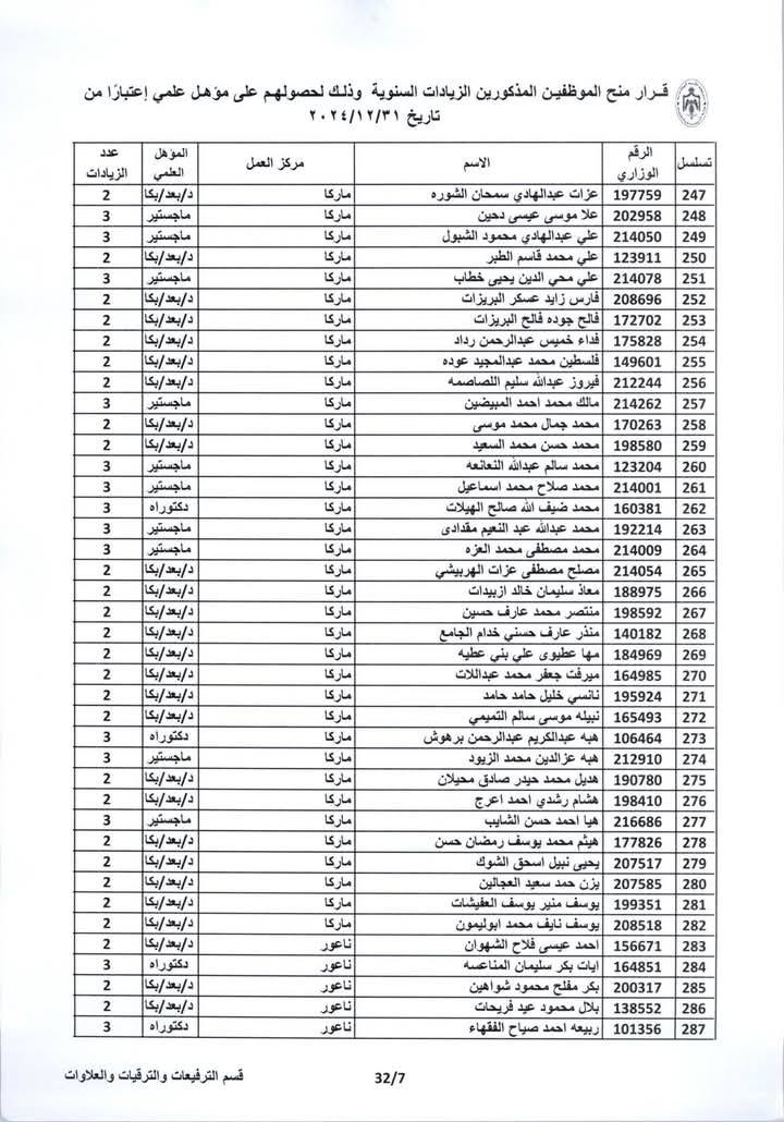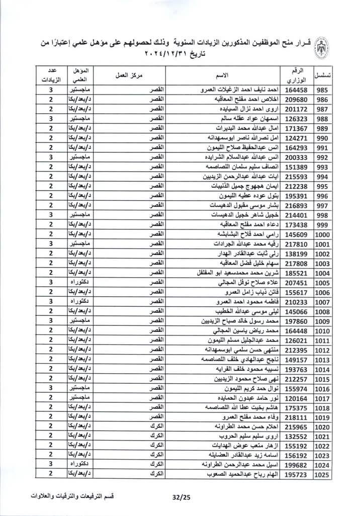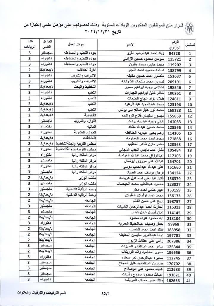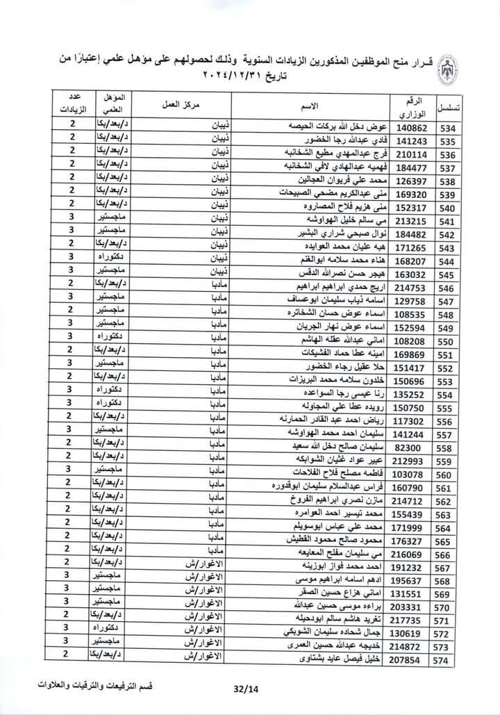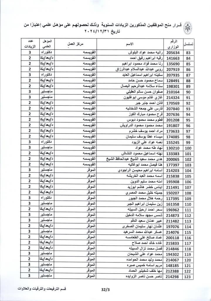 الوقائع الاخبارية: قرر وزير التربية والتعليم الدكتور عزمي محافظة منح 1278 موظفا الزيادات السنوية لحصولهم على مؤهلات علمية جديدة ابتداء من تاريخ 31/12/2024.