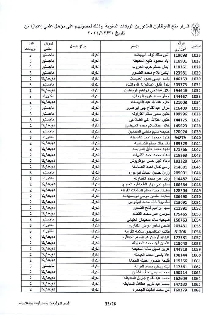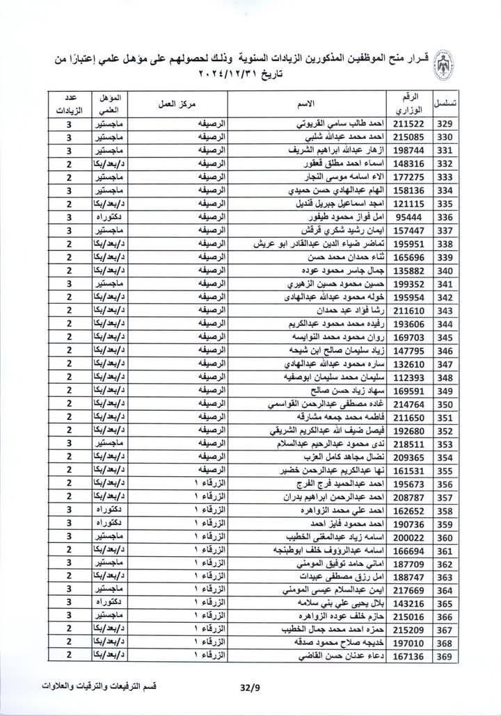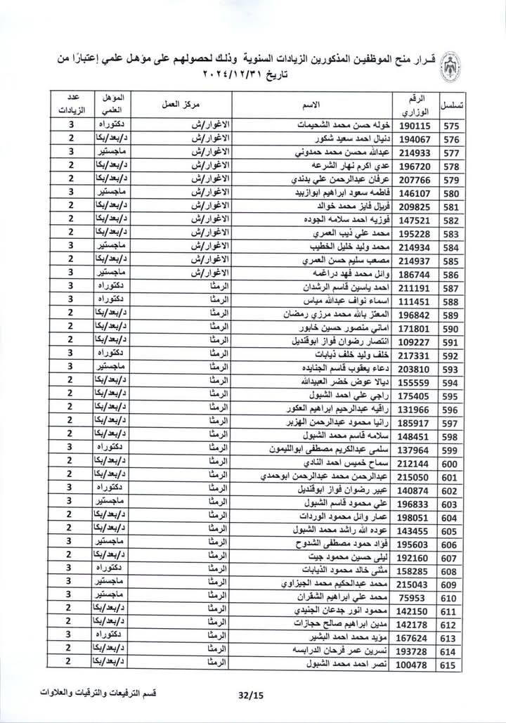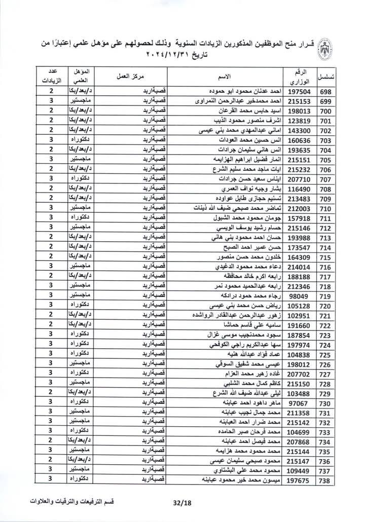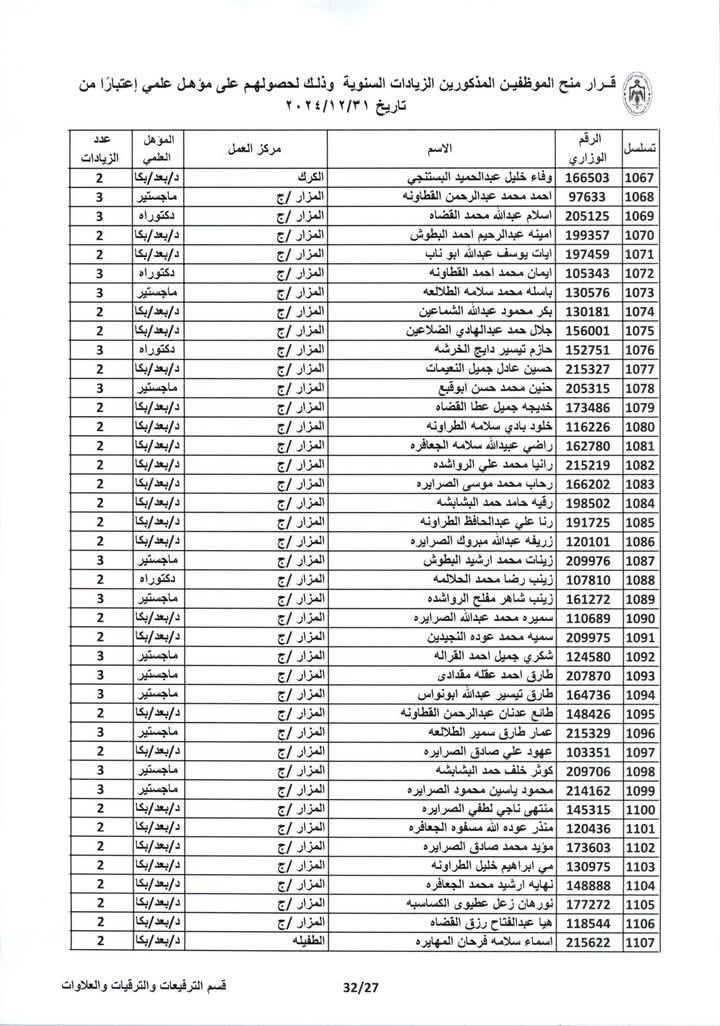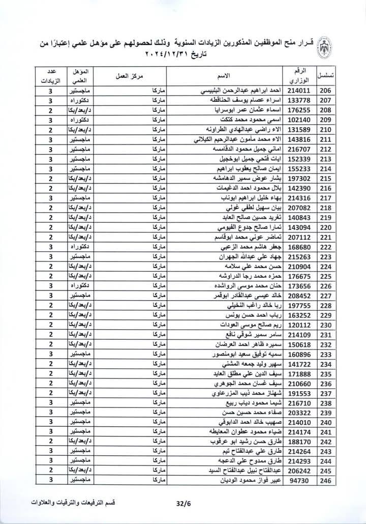 الوقائع الاخبارية: قرر وزير التربية والتعليم الدكتور عزمي محافظة منح 1278 موظفا الزيادات السنوية لحصولهم على مؤهلات علمية جديدة ابتداء من تاريخ 31/12/2024.