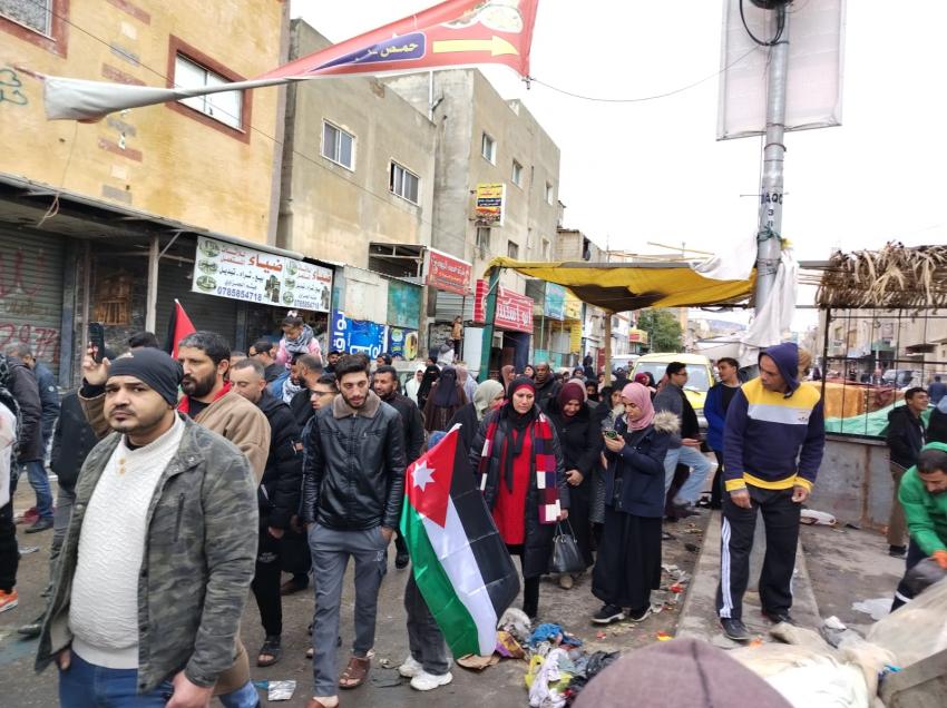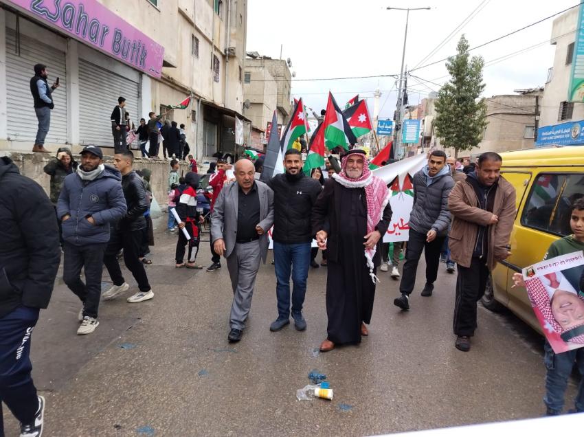 الوقائع الإخبارية : خرج المئات من أهالي مخيم البقعة، في مسيرة تضامنية، مع قطاع غزة، وتأييدًا لمواقف جلالة الملك عبدالله الثاني بن الحسين، إزاء التهجير.