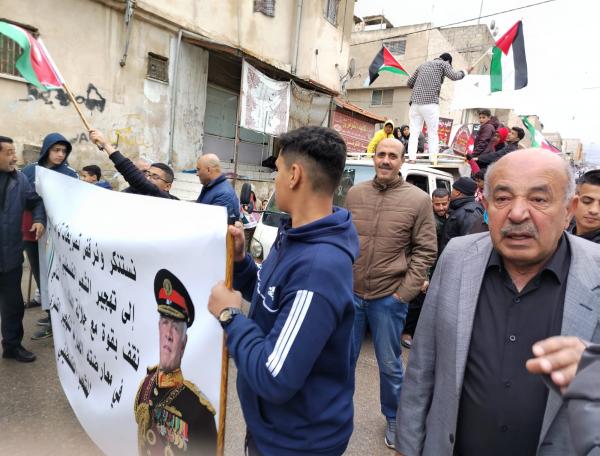 أبناء مخيم البقعة يخرجون بمسيرة مؤيدة لمواقف الملك