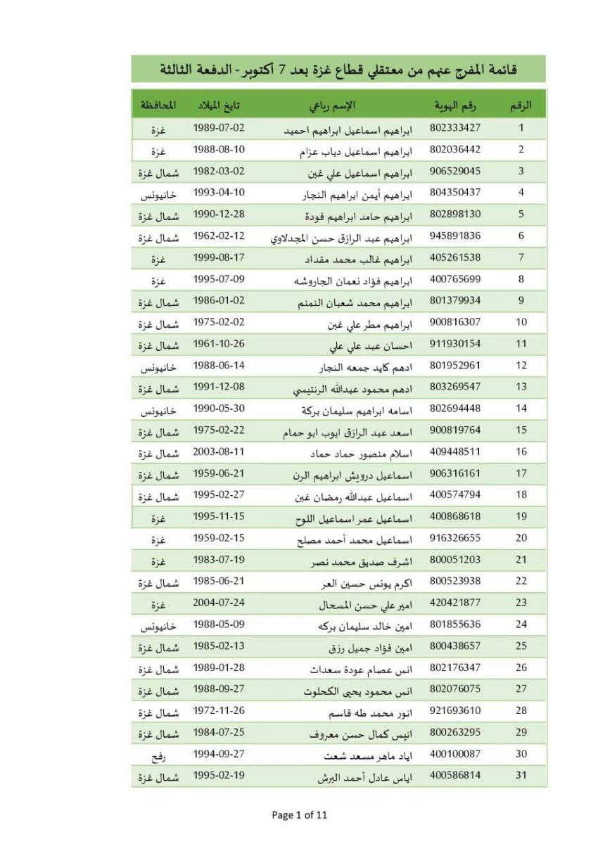 كما سيتم الإفراج عن 333 معتقلا من قطاع غزة، اعتقلتهم قوات الاحتلال الإسرائيلي خلال عدوانها على القطاع بعد السابع من أكتوبر/ تشرين الأول 2023.
