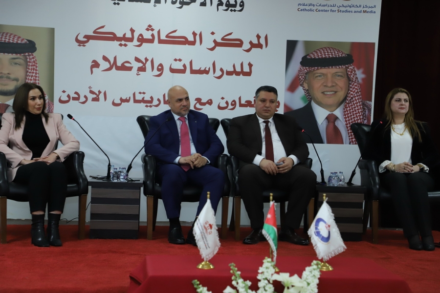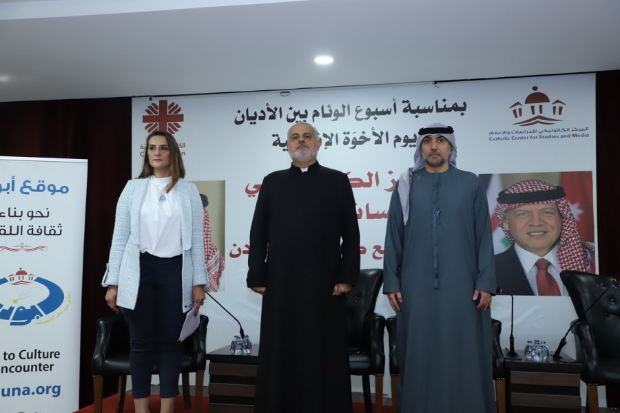 الوقائع الإخبارية : أحيا المركز الكاثوليكي للدراسات والإعلام، بالشراكة مع جمعية الكاريتاس الأردنيّة، مرور 15 عامًا على أسبوع الوئام بين الأديان ومرور 5 سنوات على اليوم الدوليّ للإخوة الإنسانيّة، في ندوة ثمّنت الجهود التي يبذلها جلالة الملك عبدالله الثاني في صنع السلام، شقيق الوئام، والقائم على العدالة والحقوق الشرعيّة والقيم الإنسانيّة النبيلة.