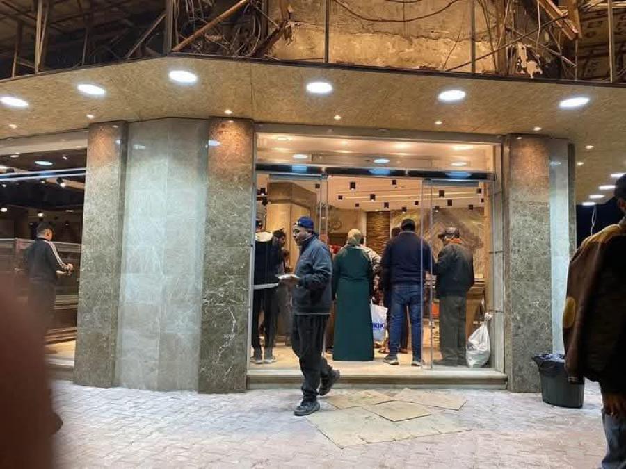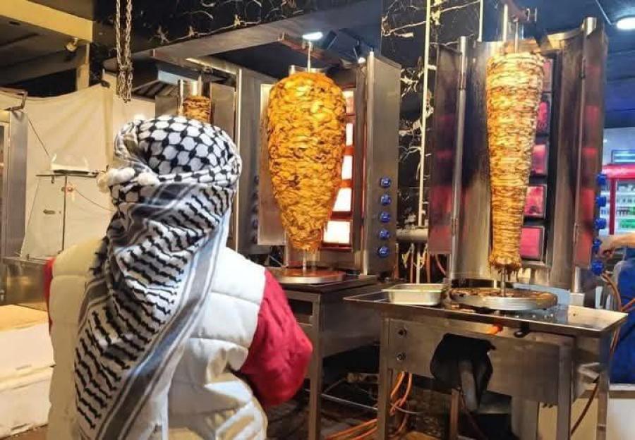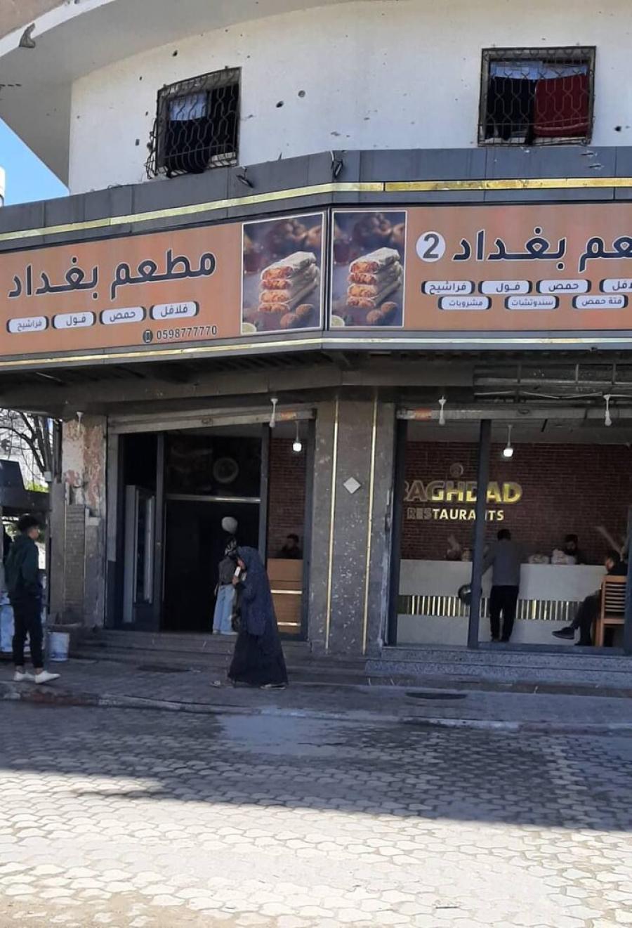 وأظهرت الصور إعادة تجهيز لافتة لمطعم فلافل، ومطعم اسمه "مطعم بغداد" مفتوح، بالإضافة إلى أسياخ الشاورما وهي أمام النار بانتظار الزبائن.