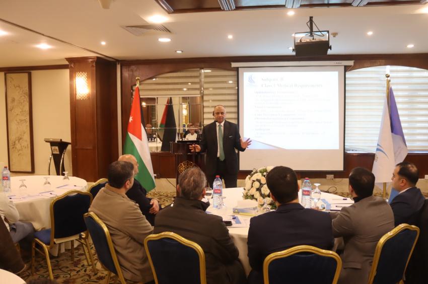 وتضمنت الورشة عدة محاور من أهمها التشريعات الطبية الخاصة لإصدار الشهادات الطبية واللياقة الطبية لأطقم وفنيو صيانة الطائرات كمتطلب لتطبيق التعليمات والتشريعات الطبية الصادرة عن قانون الطيران المدني الأردني رقم 41 لعام 2007 وتعديلاته، بالإضافة الى تلبية متطلبات منظمة الطيران المدني الدولي(الايكاو) فيما يخص مكافحة ومنع سوء استخدام العقاقير والكحول في بيئة الطيران وما لها من تداعيات وتأثيرات سلبية على سلامة وأمن الطيران المدني، حيث تم مناقشة تأثير العقاقير المخدرة والكحول على الأداء الوظيفي لأطقم الطائرات، بالإضافة إلى استعراض أحدث اللوائح والتشريعات المتعلقة بالفحوصات الطبية واشتراطات اللياقة البدنية للعاملين في هذا المجال.