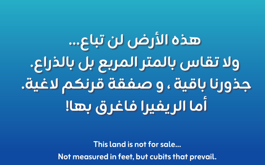 As the video unfolds, it reveals a crystal-clear statement: "Whoever tries to take over the land and reshape it by building rivieras, will fail. This land is not for sale and its people will always rise from the rubbles to reclaim and rebuild it with love and hope.”