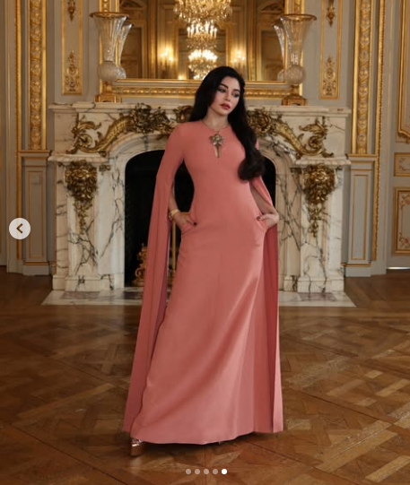 ظهرت هيفاء وهبي بإطلالة غير تقليدية ومختلفة عن الإطلالات التي تظهر بها دوما، حيث ارتدت فستانا طويلا ذا أكمام طويلة باللون البينك الفاتح الذي لا يحمل أي نقوشات او تطريزات.
