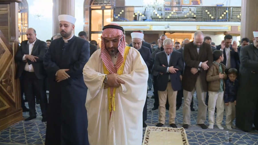 الملك يؤدي صلاة المغرب في المسجد الحسيني وسط عمّان