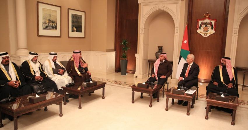 جاء ذلك خلال لقائه، اليوم الأربعاء في الديوان الملكي الهاشمي، وفدا من أبناء عشائر الترابين، ووفدا من أبناء لواء بني كنانة، حيث أشار إلى إن المرحلة الراهنة تتطلب من الجميع التكاتف والسمو فوق التحديات.