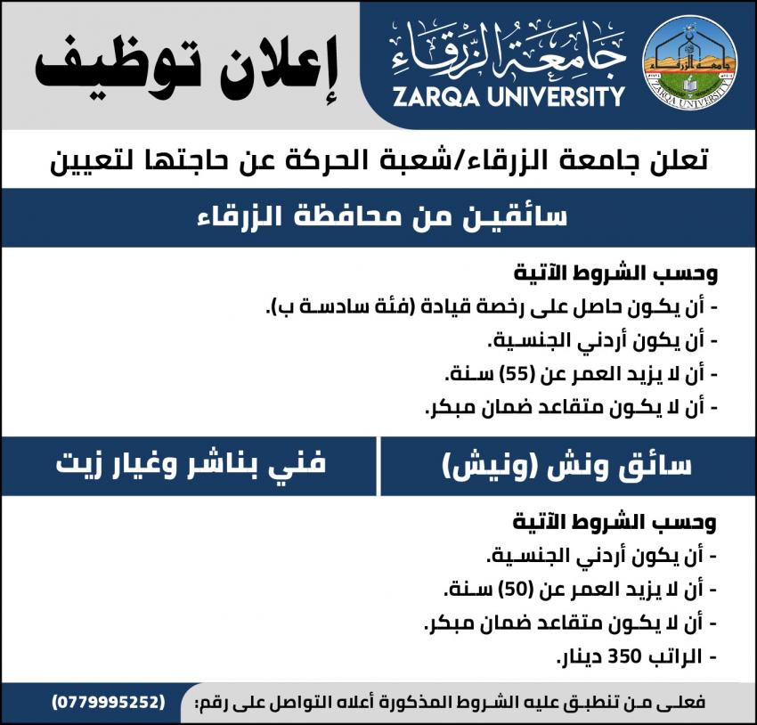 الوقائع الإخبارية: وظائف شاغرة لدى جامعة الزرقاء.
