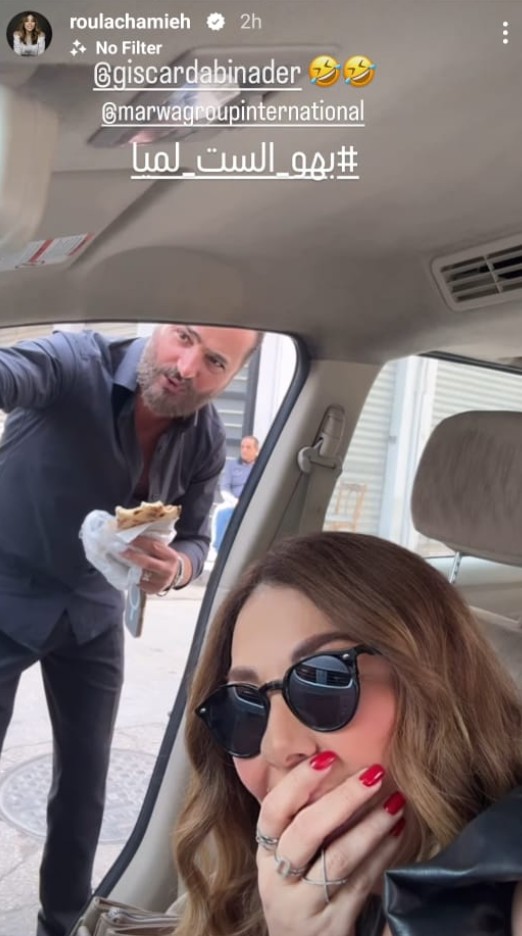 وأطلت رولا في الفيديو من داخل السيارة وهي تستعد لتصوير مشاهدها في مسلسل "بهو الست لميا" وتتحدث مع زميلها في العمل الممثل جيسكار ابي نادر طليق الممثلة نادين الراسي.