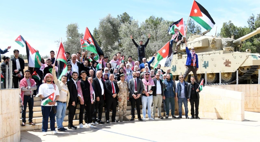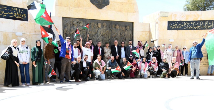 واشتمل الحفل الذي شارك به الأستاذ الدكتورة منى أبو دلو نائب الرئيس، وعدد من عمداء الكليات، وأعضاء الهيئتين التدريسية والإدارية والطلبة، على وقفة للعلم وزيارة رمزية لصرح الشهيد، إلى جانب تزيين مرافق الجامعة بعلم الأردن، في مشهد وطني يعكس روح الانتماء والاعتزاز بالهوية الوطنية والقيادة الهاشمية.