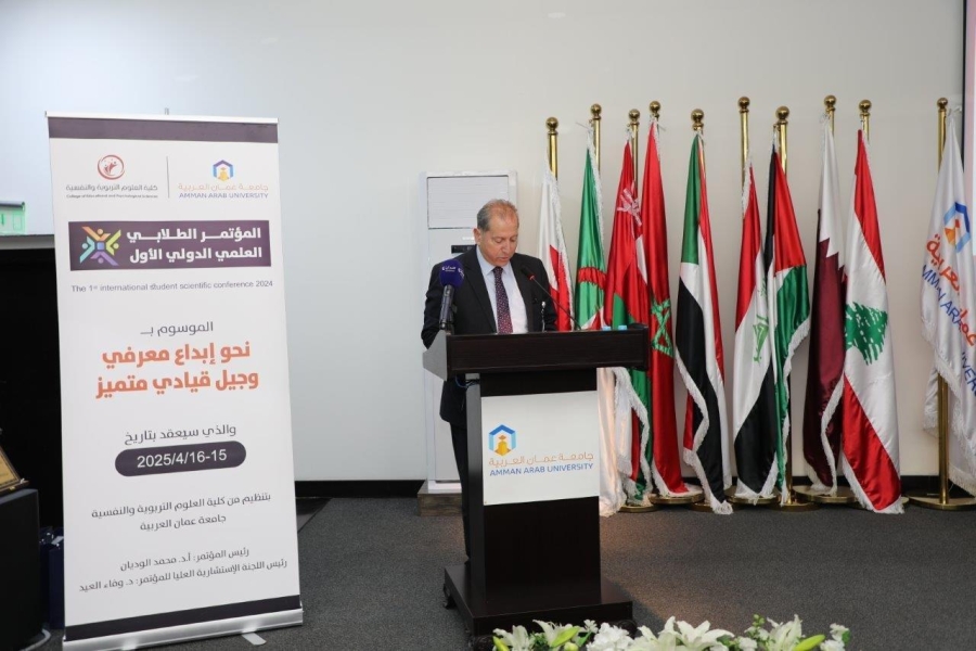 وأشار الدكتور الوديان في كلمته خلال افتتاح فعاليات المؤتمر بأن جامعة عمان العربية منذ تأسيسها تحرص على دعم المبادرات العلمية النوعية، ومواكبة المستجدات في شتى المجالات، بهدف النهوض بالأجيال وبث روح الإبداع والتميز في نفوس الطلبة، وانطلاقاً من رؤية الجامعة ورسالتها جاءت فكرة المؤتمر الطلابي العلمي الدولي الأول الذي تنظمه كلية العلوم التربوية والنفسية الرائدة التي نشأت تزامنًا مع تأسيس الجامعة.