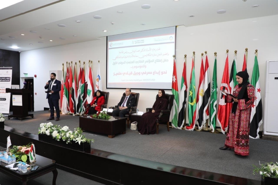 الوقائع الاخبارية:برعاية الأستاذ الدكتور محمد الوديان رئيس جامعة عمان العربية وبحضور سعادة الأستاذة شوق عبدالله الكعبي قنصل سفارة مملكة البحرين، والدكتورة وفاء العيد عميد كلية العلوم التربوية والنفسية ، انطلقت في رحاب جامعة عمان العربية أعمال المؤتمر الطلابي العلمي الدولي الأول الذي نظمته كلية العلوم التربوية والنفسية تحت شعار "نحو إبداع معرفي وجيل قيادي متميز"، بحضور كل من : الأستاذ الدكتور إسماعيل يامين مساعد الرئيس للشؤون الأكاديمية، والسيدة نادية القديمات مساعد الرئيس للشؤون المالية والإدارية، والدكتور حسام الحمد مساعد الرئيس للتخطيط وضمان الجودة، وعمداء الكليات وأعضاء الهيئتين التدريسية والإدارية وطلبة الجامعة والذي شهد ايضاً حضوراً متميزاً من عدد من الشخصيات الأكاديمية والباحثين من داخل المملكة الأردنية الهاشمية وخارجها ، كما شارك في أعمال المؤتمر عدد من الجامعات العربية والدولية إلى جانب جامعة عمان العربية، من بينها: جامعة تونس / تونس ، وجامعة البليدة / الجزائر، و جامعة عين شمس / مصر ، و La Laguna University / اسبانيا ، و جامعة النجاح / فلسطين ، وكل من الجامعات الأردنية : جامعة اليرموك ، الجامعة الأردنية ، الجامعة الهاشمية ، جامعة العلوم الإسلامية العالمية.