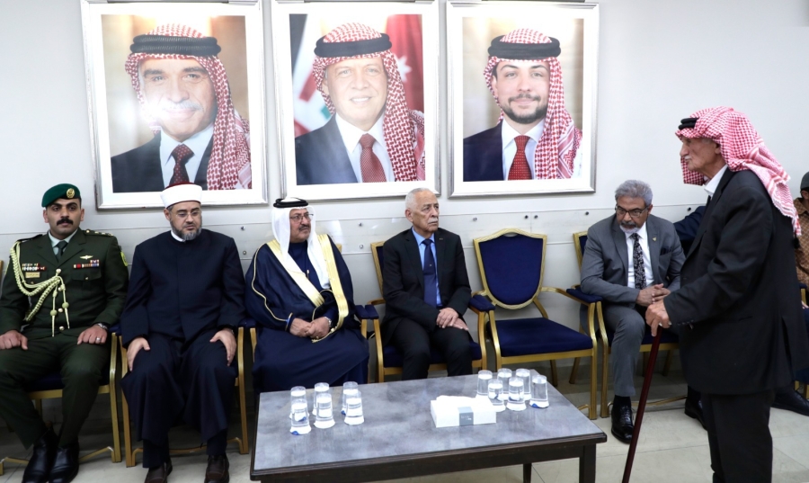 كما نقل العيسوي، خلال زيارته بيت عزاء المرحومة سناء عبدالقادر الجندي، أرملة المرحوم المهندس هشام الجمل، تعازي ومواساة جلالة الملك وولي العهد، إلى ذوي الفقيدة، وعموم عشيرتي الجمل والجندي، سائلا المولى عز وجل أن يتغمدها بواسع رحمته.