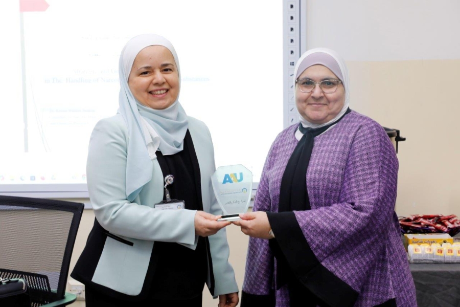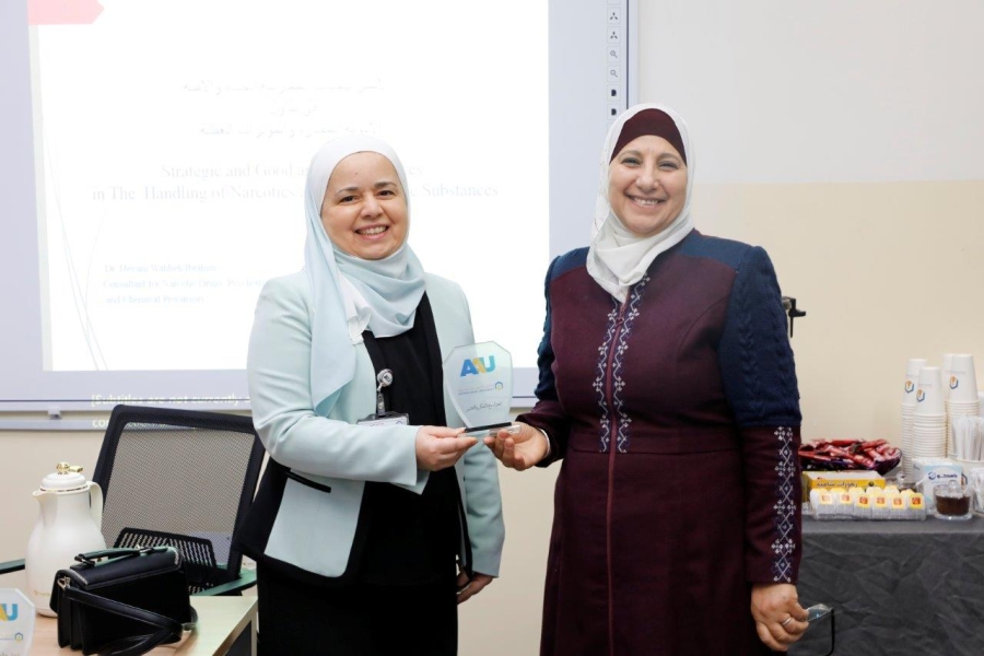 بدورها أكدت الدكتورة أبو حويج على أهمية هذه الورشة في تسليط الضوء على أبرز القضايا الراهنة في مجاليّ السلامة الدوائية والصحة العامة، كما أوضحت أن الفعالية تهدف إلى رفع كفاءة الطلبة وتمكينهم من التعامل مع التحديات المعاصرة المرتبطة باليقظة والتنظيم الدوائي، خصوصًا فيما يتعلق بالأدوية المخدرة ذات التأثير الحساس، وبينت أبو حويج بأن الأدوية المخدرة تمثل تحديًا مزدوجًا أمام أنظمة الرعاية الصحية، إذ تُعدّ ضرورة لعلاج الآلام الشديدة والحالات المرضية الحرجة من جهة، في حين يشكل إساءة استخدامها أو تهريبها خارج الأطر القانونية خطرًا بالغًا ينعكس سلبًا على صحة الأفراد وسلامة المجتمع، بما يحمله من أبعاد صحية واجتماعية وأمنية، وشددت على الدور الحيوي الذي تلعبه الاستراتيجيات التنظيمية في إيجاد التوازن بين توفير هذه الأدوية للمرضى الذين هم في أمسّ الحاجة إليها، والحد من مخاطر إساءة استخدامها، ولفتت إلى أن هذه الاستراتيجيات تتضمن سياسات دقيقة تتعلق بعمليات التصنيع، والتسجيل، ومنح التراخيص، وتنظيم التوزيع، بالإضافة إلى تعزيز أنظمة التتبع والرقابة، وتكثيف حملات التوعية المجتمعية، وسنّ التشريعات الصارمة، وتفعيل التعاون بين الجهات الصحية والأمنية والقانونية.