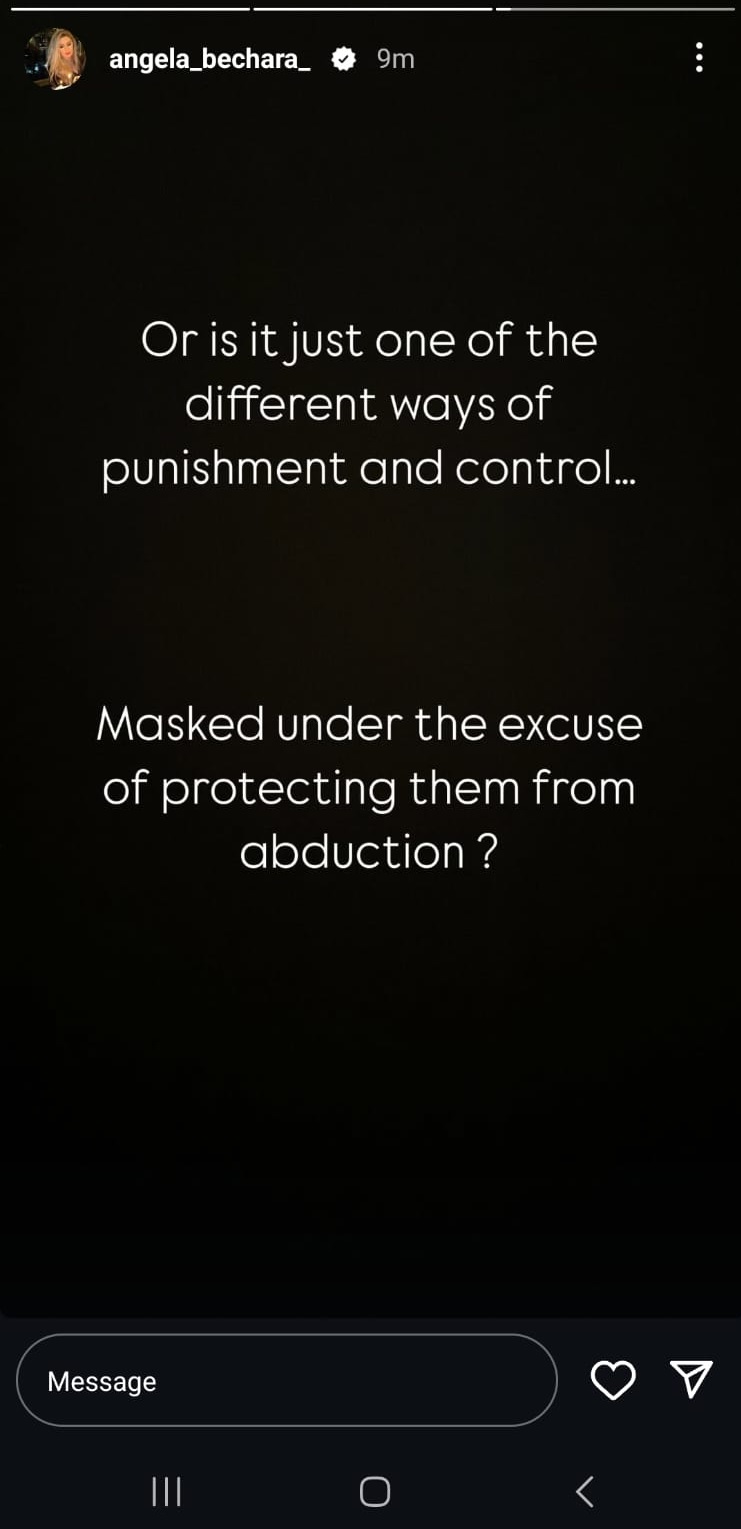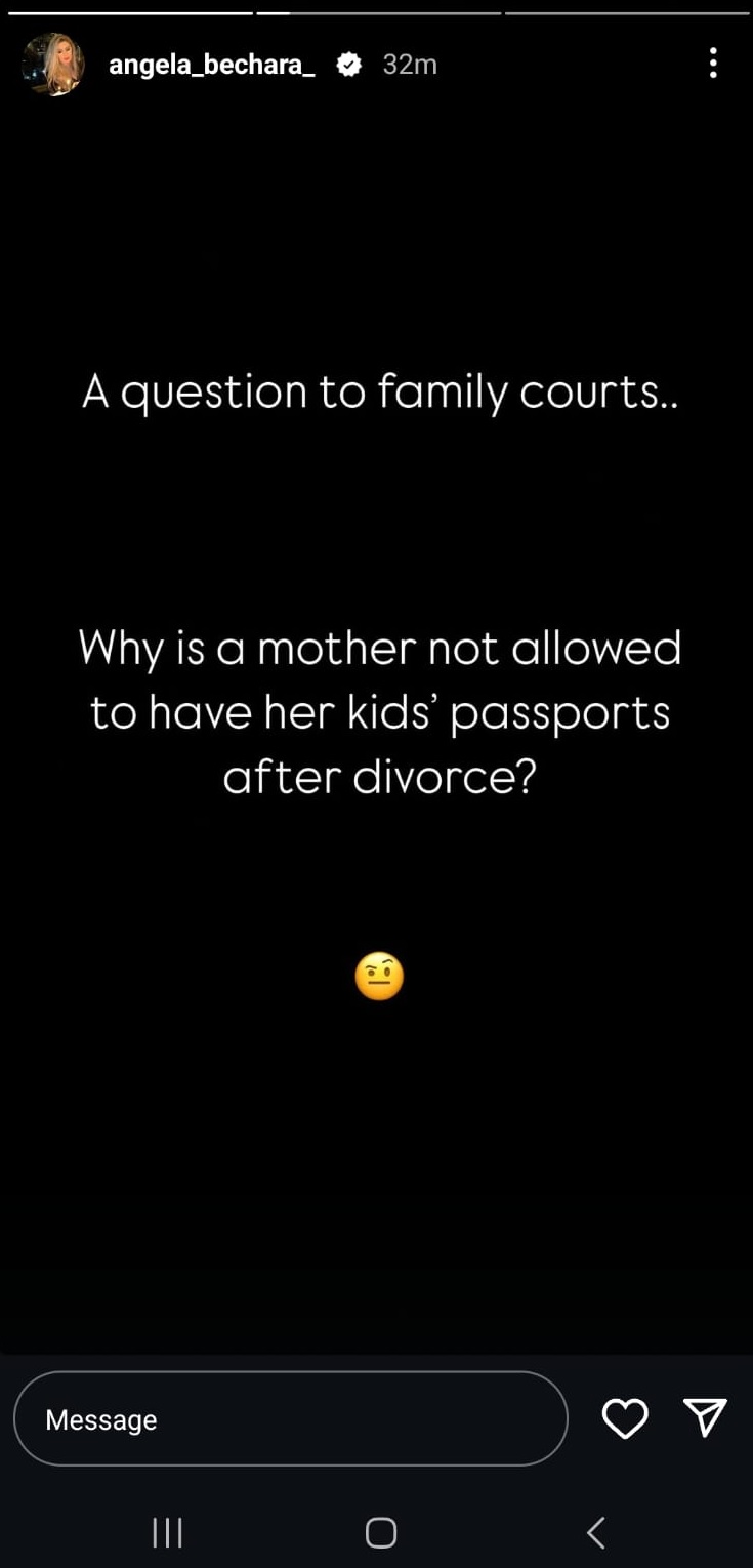 الوقائع الإخبارية : وجّهت أنجيلا بشارة طليقة الفنان وائل كفوري سؤالاً، وكتبت عبر خاصية "ستوري" عبر حسابها على "انستغرام": "لماذا الأمّ غير مسموح لها بالحصول على جوازات سفر أولادها بعد الإنفصال؟".