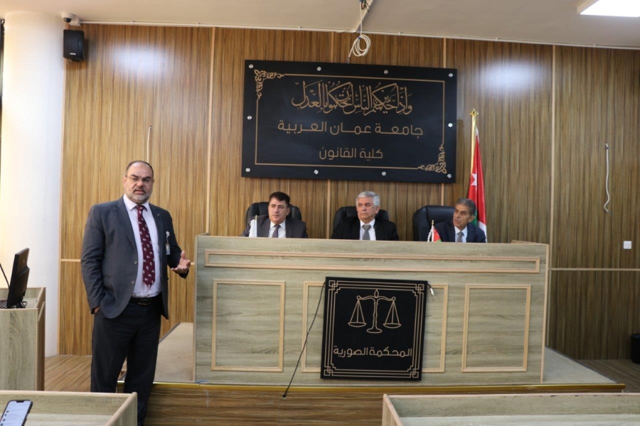 وافتتح الجلسة مندوبًا عن رئيس الجامعة الأستاذ الدكتور إسماعيل يامين مساعد الرئيس للشؤون الأكاديمية، وبحضور كل من: الأستاذ الدكتور نعمان الخطيب، والدكتور محمود أبو جمعة، والدكتور فهد الكساسبة، من أعضاء الهيئة التدريسية، بالإضافة إلى عدد من الطلبة من مختلف التخصصات، حيث أدار الجلسة الدكتور فارس المجالي عضو هيئة التدريس في كلية القانون.