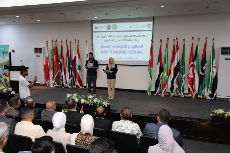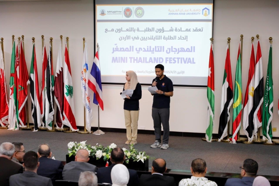 الوقائع الاخبارية:تحت رعاية الأستاذ الدكتور محمد الوديان رئيس جامعة عمان العربية وبحضور السفير التايلندي نظمت عمادة شؤون الطلبة في الجامعة وبالتعاون مع اتحاد الطلبة التايلنديين في الأردن، فعاليات "المهرجان التايلندي المصغر – Mini Thailand Festival"، بمشاركة مميزة من السفارة التايلندية في المملكة الأردنية الهاشمية.
