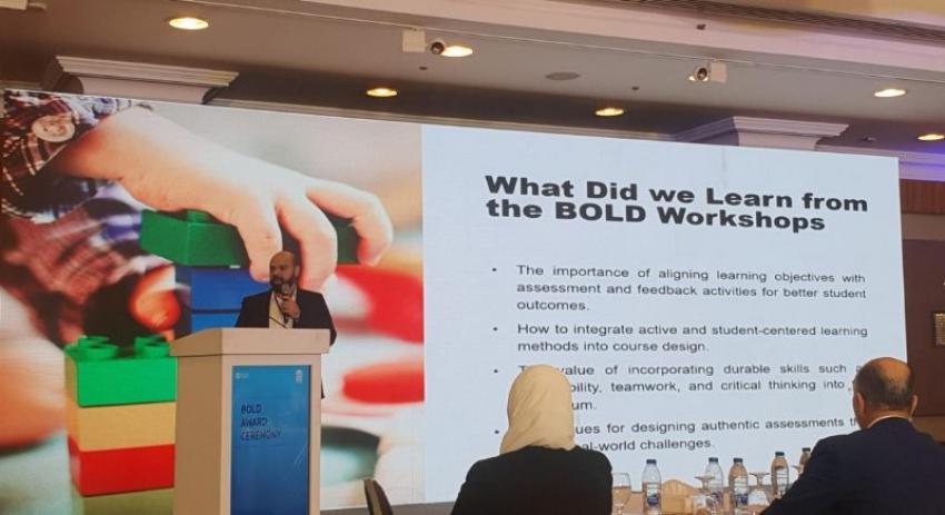 الوقائع الإخبارية: شاركت جامعة البترا في احتفال توزيع جوائز فعاليات برنامج "بـولد" "BOLD" والذي عقد بعنوان الاحتفاء والتميز، ومثل جامعة البترا كل من رئيس قسم المحاسبة في كلية العلوم الإدارية والمالية الدكتور عبد الرحمن، ومدير وحدة ضمان الجودة والتخطيط وإدارة الأداء الدكتور أحمد القاسم، وبحضور نائب رئيس الجامعة الدكتور مياس الريماوي.