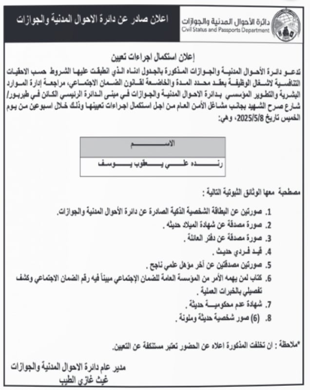 بالأسماء ... وظائف شاغرة ومدعوون لإجراء مقابلات شخصية