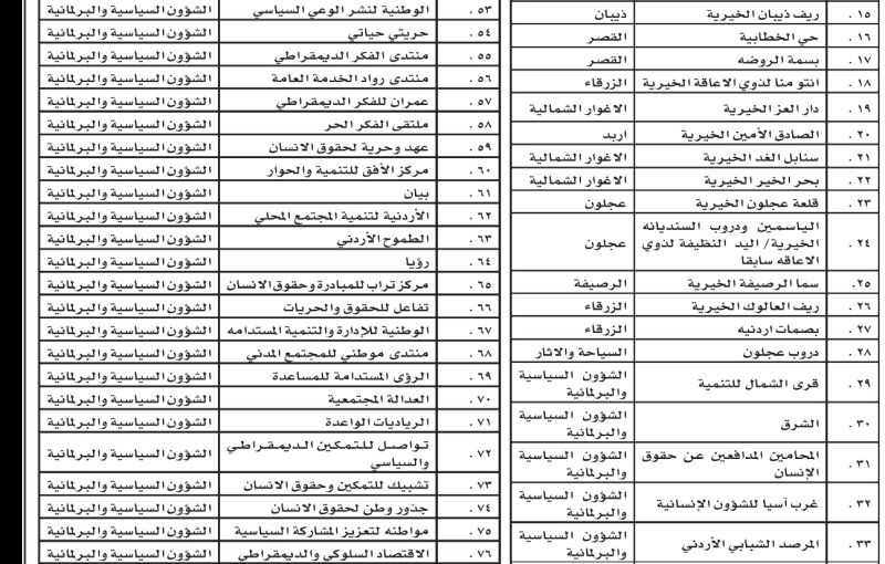 وتالياً أسماء الجمعيات: