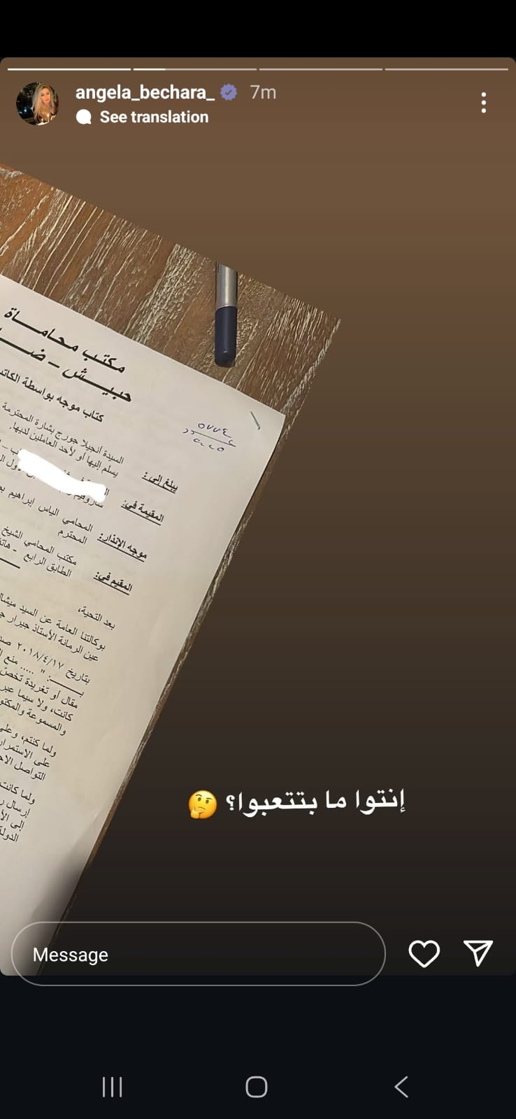 الوقائع الاخبارية:نشرت السيدة انجيلا بشارة صورة لدعوى قضائية مرفوعة ضدها استلمتها من طليقها الفنان وائل كفوري.