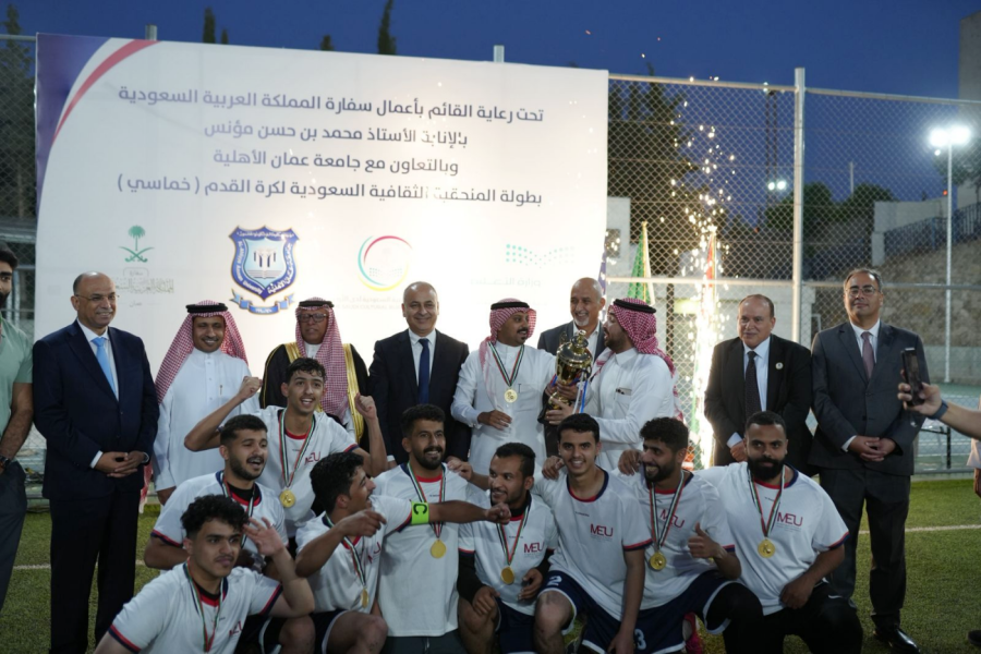 الوقائع الإخبارية: اختتمت يوم الثلاثاء الموافق 20 / 5 / 2025 منافسات بطولة الملحقية الثقافية السعودية لخماسي كرة القدم، والتي نظمتها الملحقية الثقافية السعودية بالتعاون مع قسم النشاطات والأندية الطلابية بعمادة شؤون الطلبة في جامعة عمان الاهلية على ملاعب الخماسي في الجامعة.