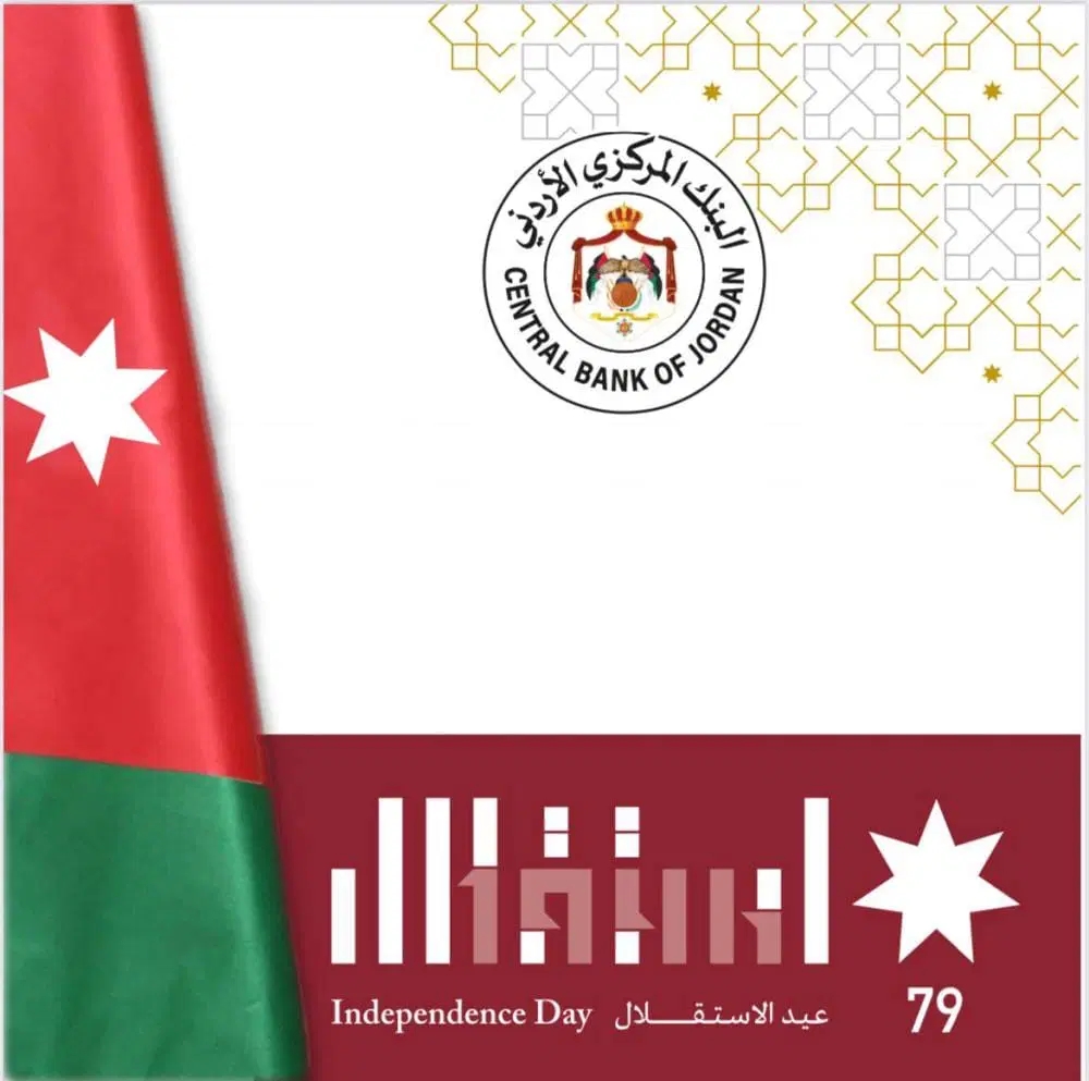البنك المركزي الاردني يهنئ جلالة الملك وولي العهد بمناسبة عيد الاستقلال الـ 79