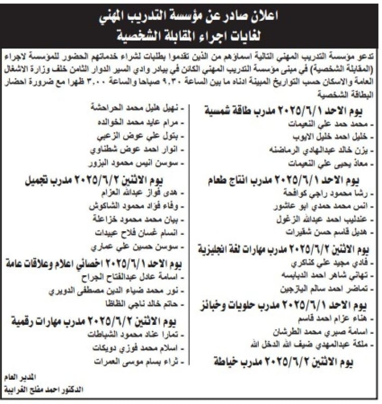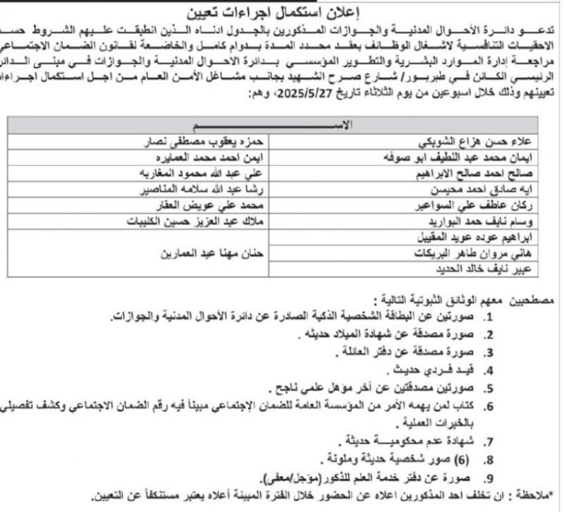 بالأسماء ... شواغر ومدعوون للمقابلات الشخصية
