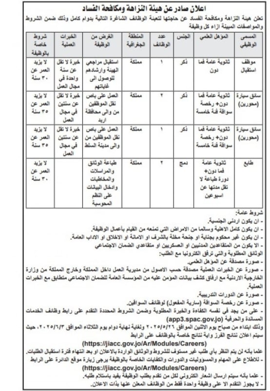 الوقائع الاخبارية:أعلنت عدد من المؤسسات الرسمية،الثلاثاء، عن حاجتها لتعبئة وظائف شاغرة لديها، فيما دعت أخرى عددًا من المرشحين لإجراء المقابلات الشخصية لغايات استكمال اجراءات التعيين.