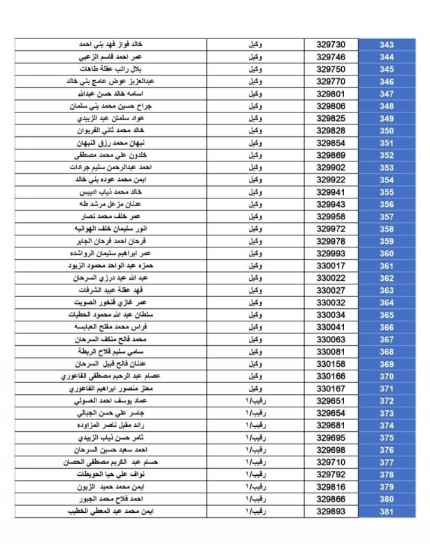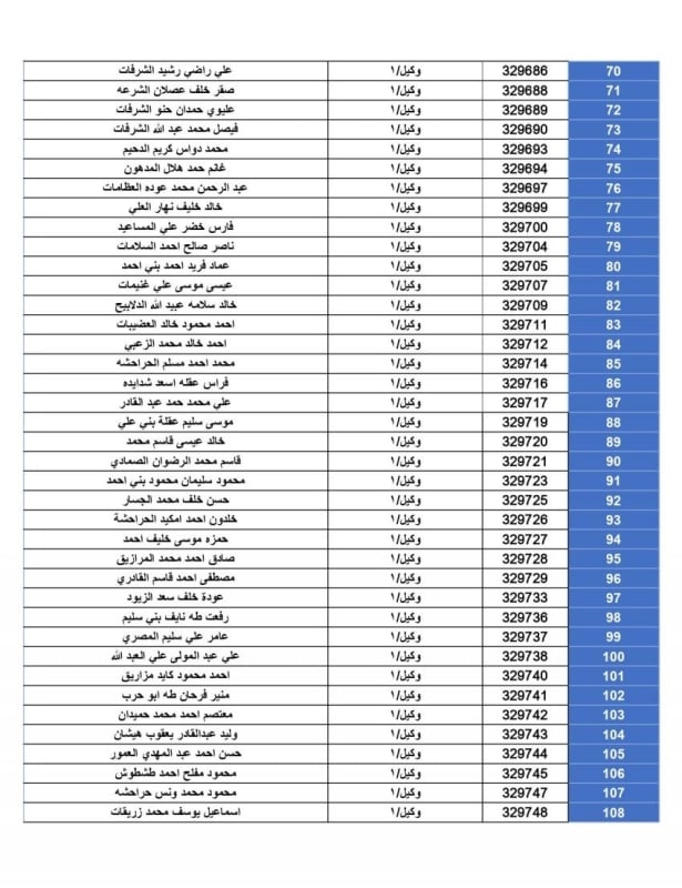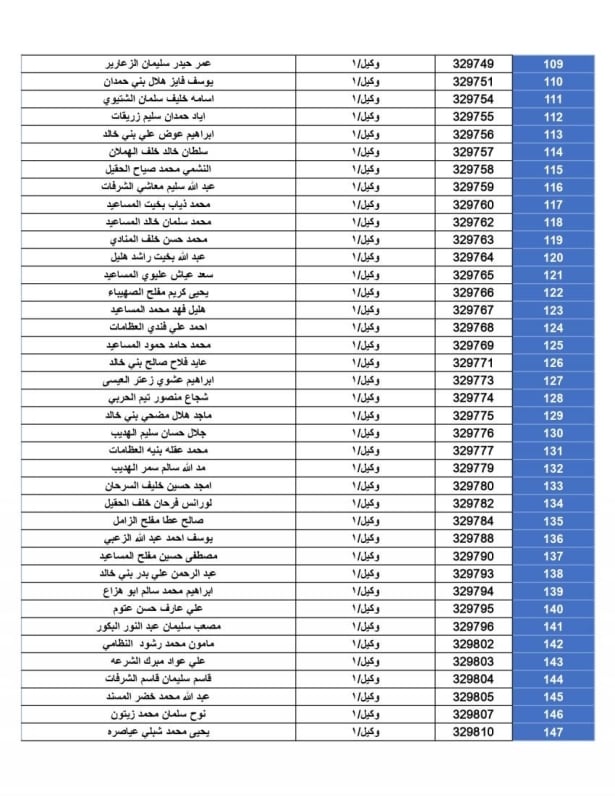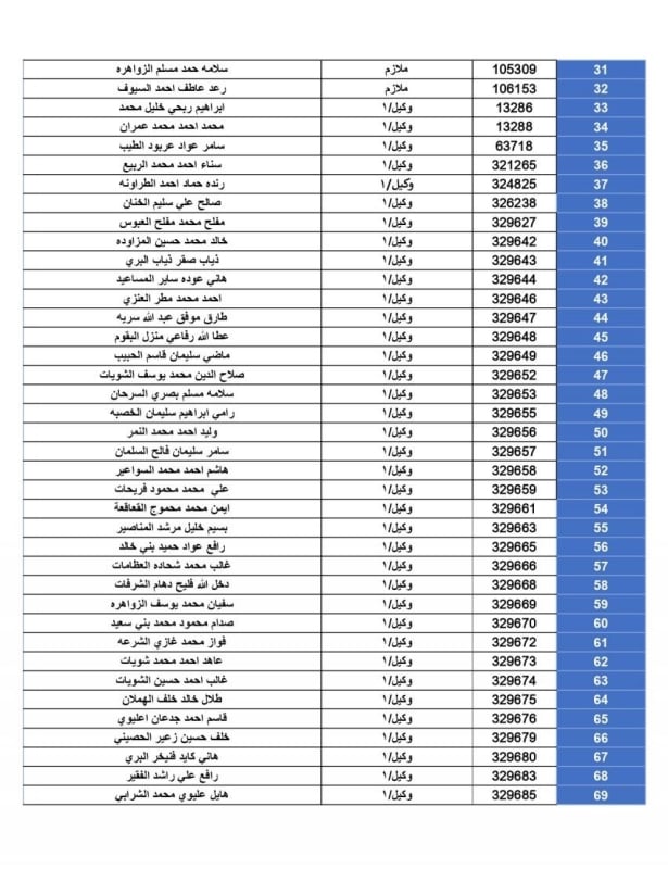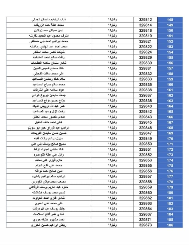 الوقائع الاخبارية:أعلنت القيادة العامة للقوات المسلحة الأردنية – الجيش العربي/ مديرية مؤسسة الإسكان والأشغال العسكرية الضباط وضباط الصف والأفراد المبينة أسماءهم أدناه قد استحقوا قرض الإسكان العسكري(الخاص بالافراد) والضباط المستفيدين من صندوق إسكان الضباط.