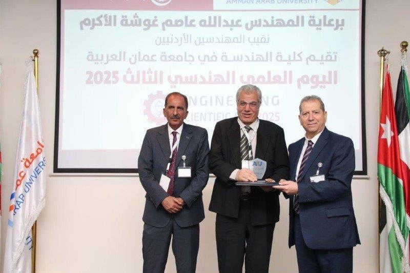 الوقائع الإخبارية : تحت رعاية المهندس عبد الله غوشة نقيب المهندسين الأردنيين نظّمت كلية الهندسة في جامعة عمان العربية اليوم العلمي الهندسي الثالث 2025 ، وذلك بهدف تعزيز التواصل بين الطلبة وأعضاء الهيئة التدريسية وأصحاب الخبرات من القطاعين العام والخاص، وتسليط الضوء على أحدث الابتكارات والتوجهات في مجالات الهندسة المختلفة، إضافة إلى عرض مشاريع والأبحاث التطبيقية التي أنجزها الطلبة ، وبحضور كلّ من : المهندس أحمد الفلاحات نائب نقيب المهندسين الأردنيين ، والأستاذ الدكتور محمد الوديان رئيس جامعة عمان العربية ، والدكتور أنور العسّاف عميد كلية الهندسة ، والأستاذ الدكتور إسماعيل يامين مساعد رئيس الجامعة للشؤون الأكاديمية ، والدكتور حسام الحمد مساعد الرئيس للتخطيط وضمان الجودة، والسيدة نادية القديمات مساعد الرئيس للشؤون المالية والإدارية ،والمهندس عماد الدباس رئيس الشعبة المعمارية في نقابة المهندسين، وبمشاركة نخبة من المهندسين والأكاديميين ورواد سوق العمل .