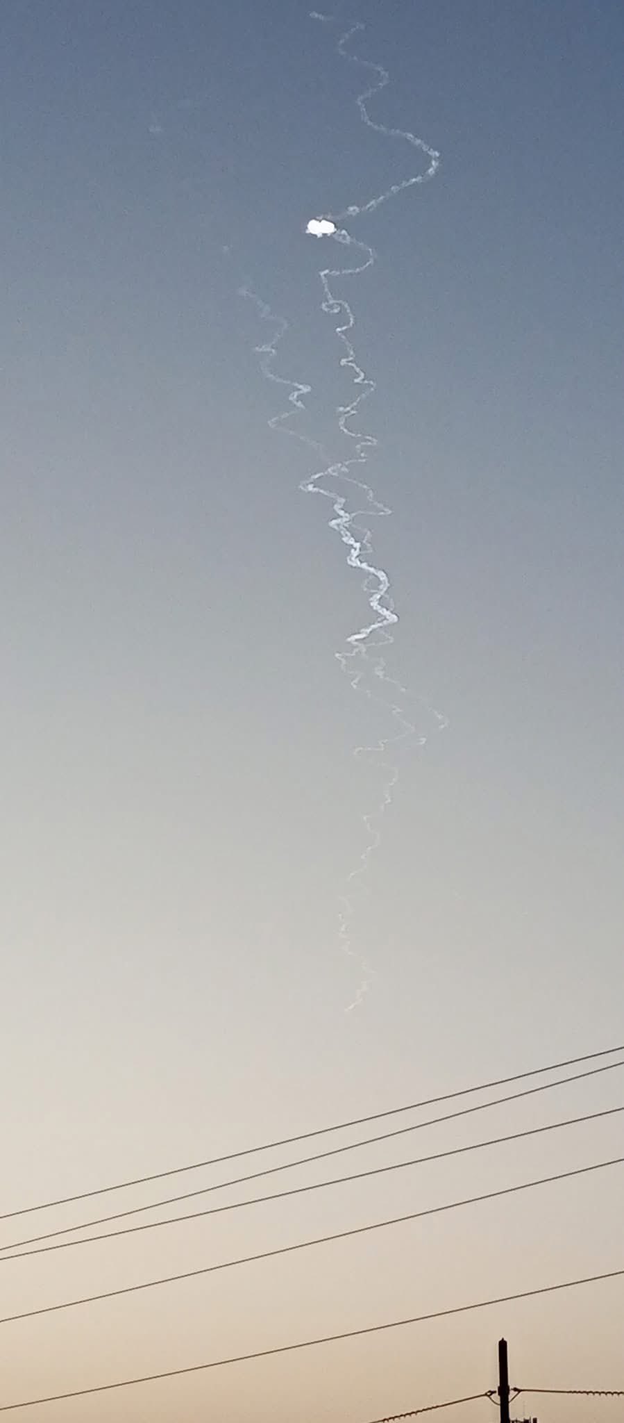الوقائع الإخبارية: بقايا الصواريخ الاعتراضية التي أطلقها الاحتلال لاعتراض الصاروخ اليمني حيث عثر عليها في الظاهرية قضاء الخليل وتم رصدها بالعين المجردة من محافظات جنوب الأردن قبل قليل.