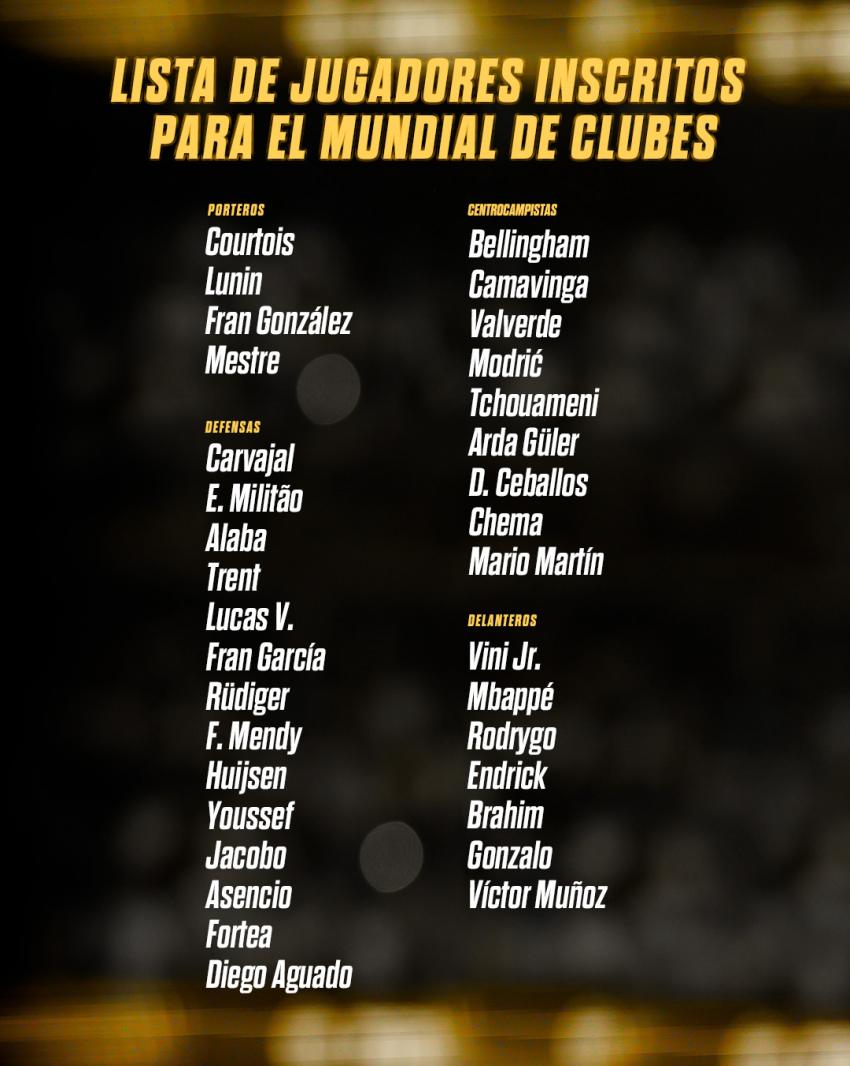 الوقائع الإخبارية: أعلن ريال مدريد عن قائمة فريقه لكأس العالم للأندية القادمة. وكما هو متوقع، تضم القائمة العديد من لاعبي ريال مدريد كاستيا الشباب، بالإضافة إلى لاعبي الفريق الأول المنضمين للفريق بعد إغلاق سوق انتقالات كأس العالم للأندية يوم الثلاثاء الماضي.