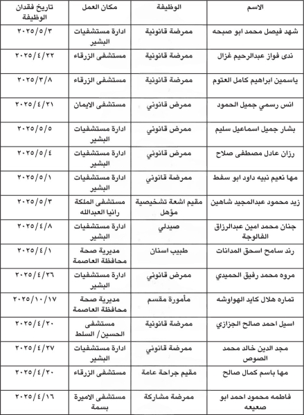 بالأسماء ...فاقدون لوظائفهم في وزارة الصحة