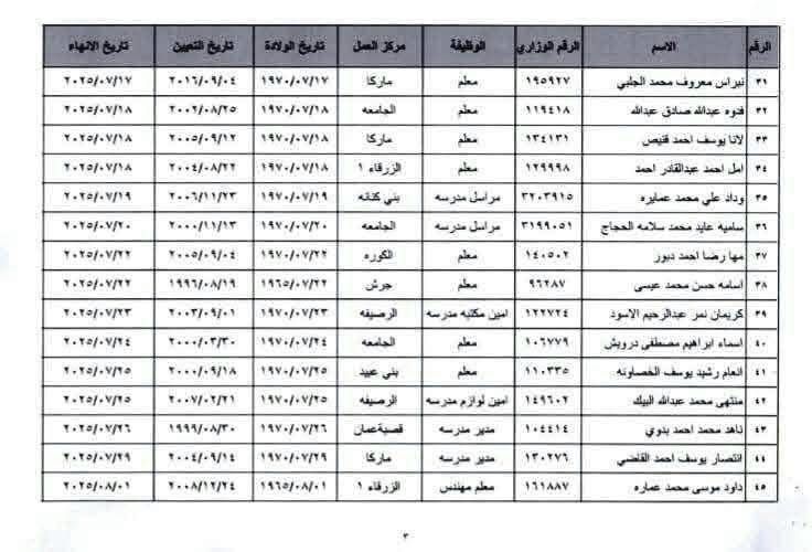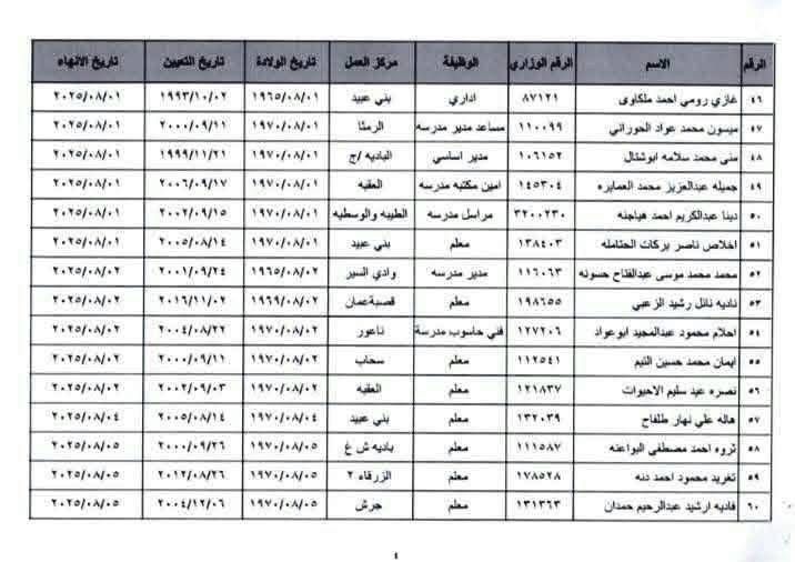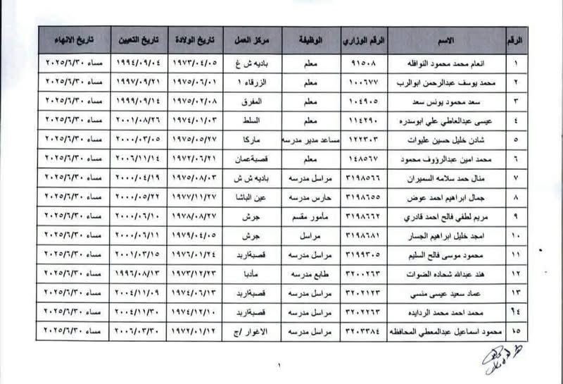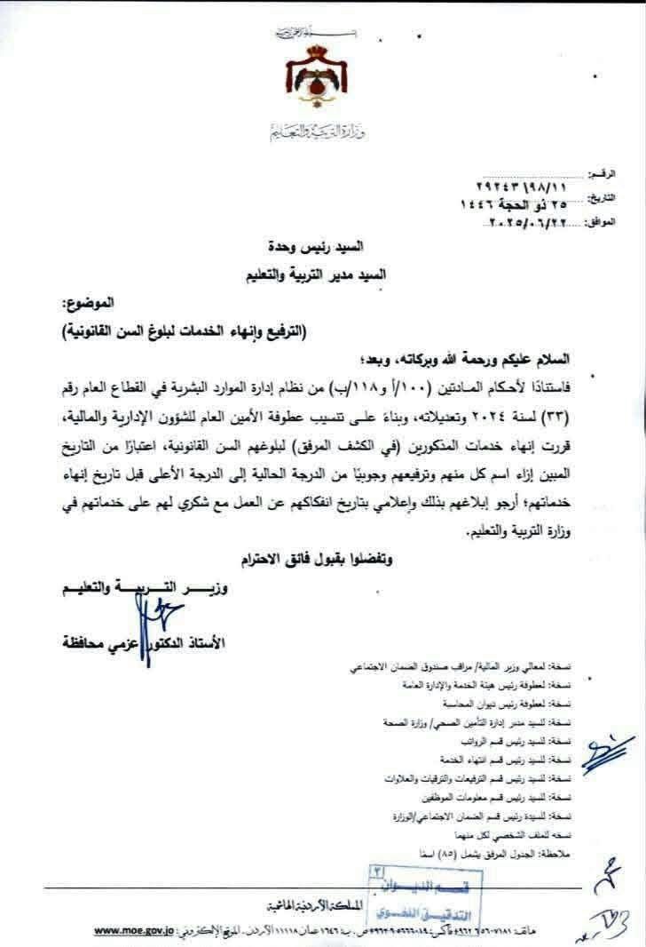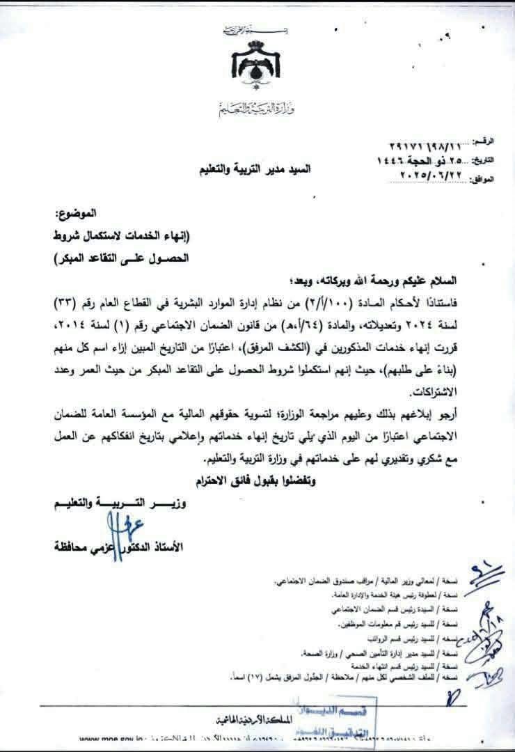بالأسماء ... إحالات للتقاعد المبكر وانهاء خدمات في التربية