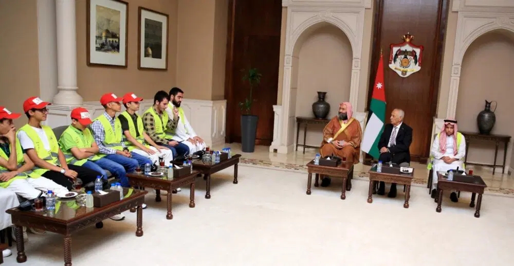 الوقائع الإخبارية : التقى رئيس الديوان الملكي الهاشمي يوسف حسن العيسوي، اليوم، وفدًا من الطلبة المتفوقين المشاركين في "مبادرة خمسين حافظ” الدائمة في المركز الثقافي الإسلامي بجامع العرب، والتي تضم نخبة من الطلبة، بينهم طلبة مكفوفون، يرافقهم إمام المسجد ومدير المركز الشيخ أحمد الزعبي، وعدد من المشرفين والمعنيين بالمبادرة.