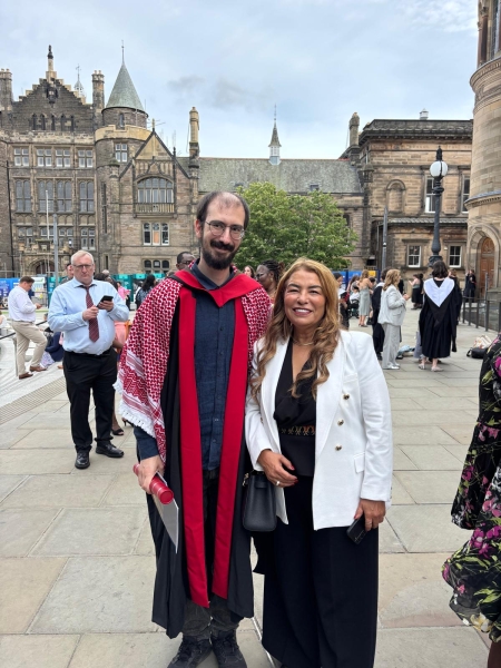 وتابعت: ما زلت أتذكر نصيحة والدي: "عليكِ أن ترفعي رأسك دائمًا"، وذلك بالحفاظ على الكرامة والنزاهة واحترام الذات في أفعالك. أبي، لقد عشت وفقًا لقيمك، ونتيجة لذلك، يشرفني الآن الوقوف هنا اليوم في جامعة إدنبره، محاطةً بهذا المجتمع الرائع من المتعلمين والقادة.