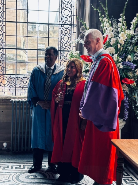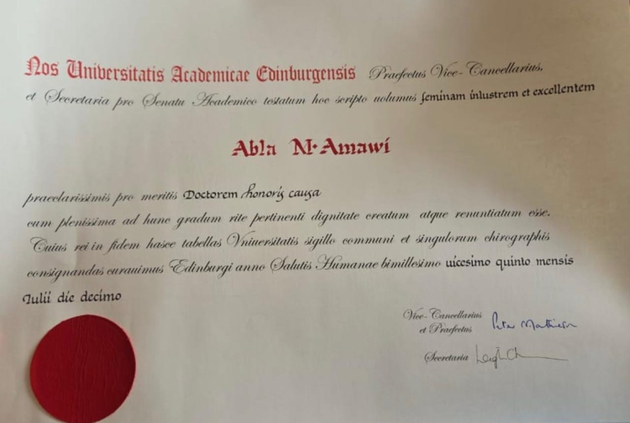 جامعة أدنبره الأسكتلندية تمنح العين عماوي الدكتوراه الفخرية لتميزها في خدمة الصالح العام