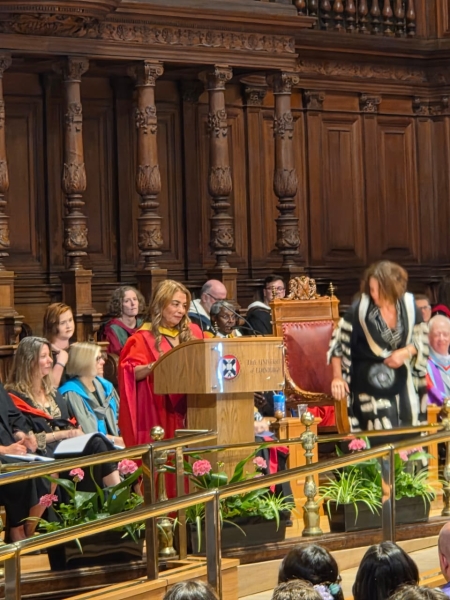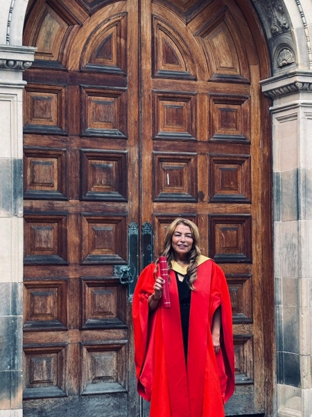 ومضت بالقول: بصفتي خريجة من جامعة إدنبره – وهو مكان صاغ عددًا لا يحصى من الطلاب وصناع التغيير حول العالم - أقول هذا: آمنوا بأنفسكم، حتى عندما لا يؤمن بكم أحد.لستم بحاجة إلى اتباع مسار محدد سلفًا. بدلاً من ذلك، ارسموا مسارًا يعكس قيمكم الأعمق. النزاهة ليست راية تُعرض – إنها انضباط نتمسك به يوميًا، خاصة عندما لا يرانا أحد. أينما قادتكم رحلتكم، يجب أن تتذكروا دائمًا أن التميز لا يُقاس بالجوائز، بل بالأثر الذي نتركه في حياة الآخرين.