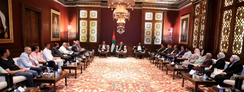 جاء ذلك خلال لقائه، اليوم الأربعاء، في الديوان الملكي الهاشمي، وفدين في لقاءين منفصلين؛ الأول من جمعية القادة التعاونية، والثاني من أبناء وبنات مخيم مأدبا.
