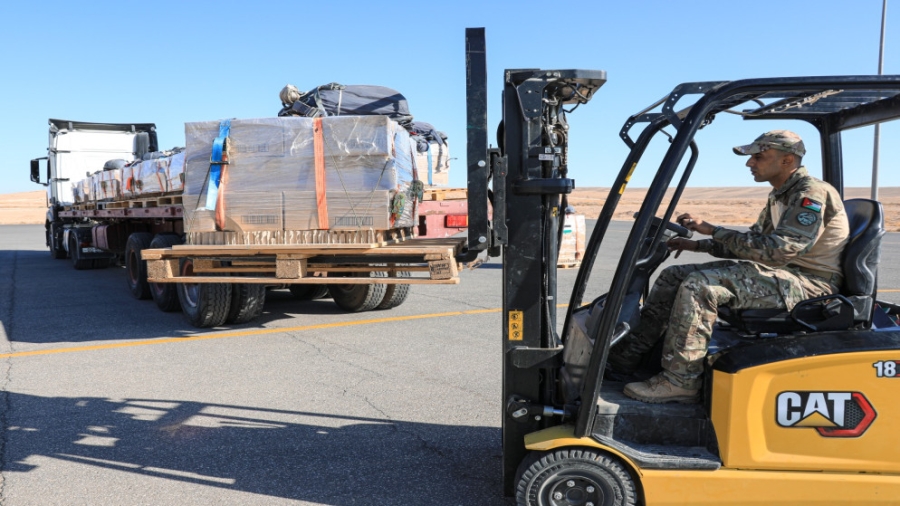 الوقائع الإخبارية : أقلعت الثلاثاء، 5 طائرات عسكرية تحمل مساعدات إنسانية وحليب أطفال ومواد غذائية من قاعدة الملك عبدالله الثاني الجوية في منطقة الغباوي، وذلك ضمن الجهود الدولية التي يقودها الأردن لإيصال المساعدات الإنسانية جواً للمناطق التي يصعب الوصول إليها براً داخل القطاع.