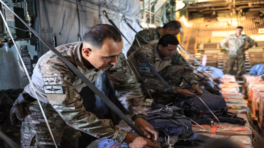 القوات المسلحة: 5 طائرات عسكرية تحمل على متنها (35) طنا من المساعدات الإنسانية تتجه إلى غزة