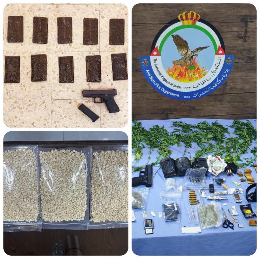 وفي قضايا الاتجار والتهريب فقد القي القبض في محافظة العقبة على تاجر للمخدرات بعد مقاومته للقوة وضبط بحوزته 10 كفوف حشيش وسلاح ناري ، فيما القي القبض شرق العاصمة على مروجين اثنين وبحوزتهم 6 كفوف حشيش ، ومرج اخر ايضا شرق العاصمةو في اخر القضايا وبحوزته 4 كفوف حشيش